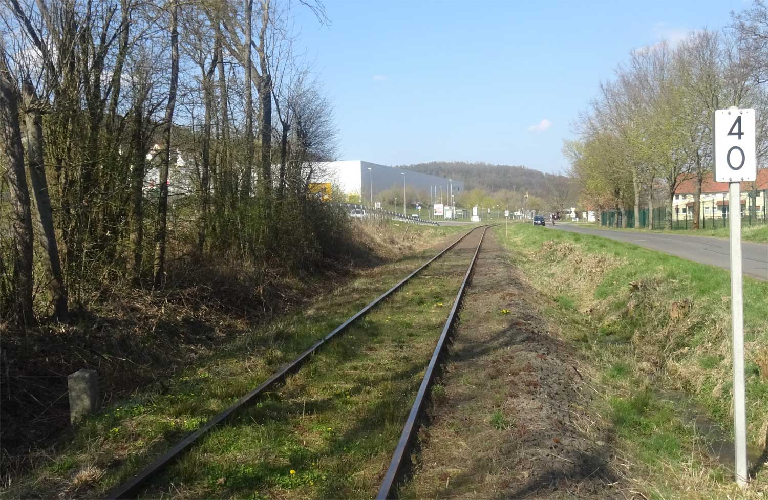 km 4,0 (Stein und Tafel) in Asbach (Kr Hersfeld) - Blick Richtung Bad Hersfeld