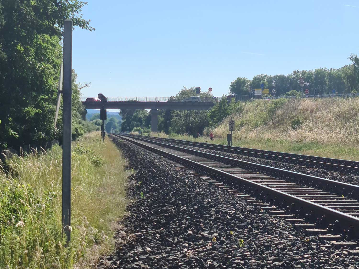 km 59,7 und km 59,8 zwischen Mainleus und Kulmbach - Blick Richtung Hof