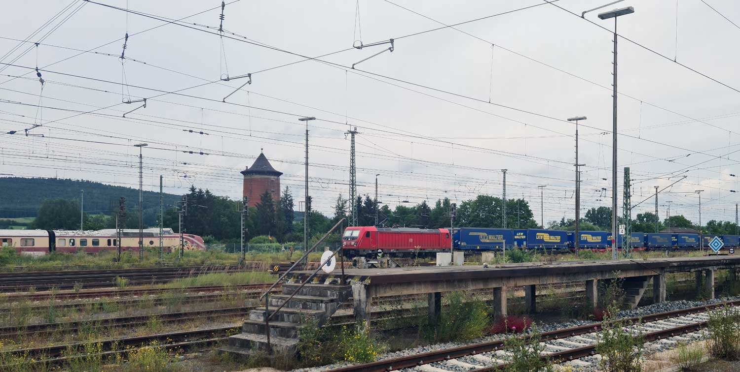 | Hof Hbf | 127,23 | km 164,75 der Strecke Leipzig Bayerischer Bf 0,12 - Altenburg Hbf 38,63 - Werdau 73,81 - Reichenbach (Vogtl) 90,96 - Plauen ob Bf 116,11 - Grenze DDR/BRD 151,699 - Hof Hbf 164,75 |