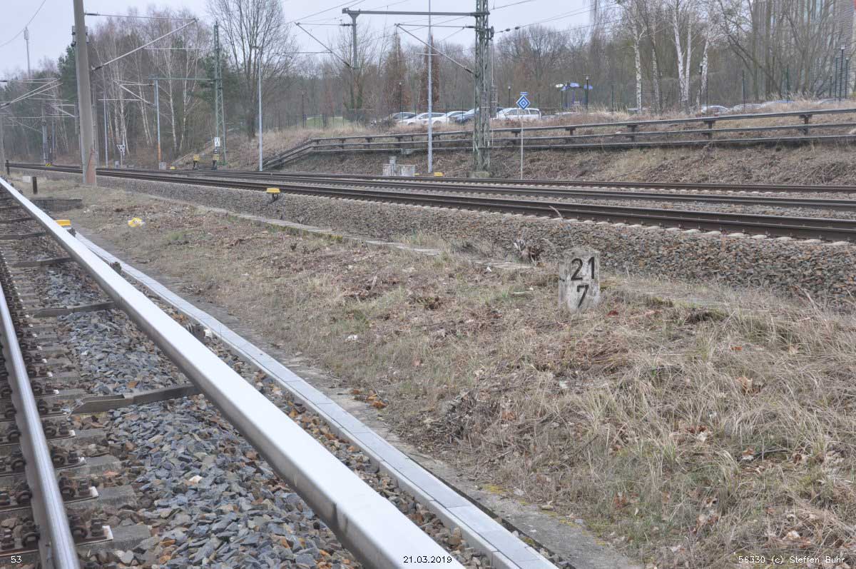 | Brandenburg Reichsbahn | 61,32 | km 56,5 der Strecke Treuenbrietzen 0,0 - Belzig 21,6 - Brandenburg Neustadt 56,5 - Rathenow 90,3 - Neustadt (Dosse) 125,6 |