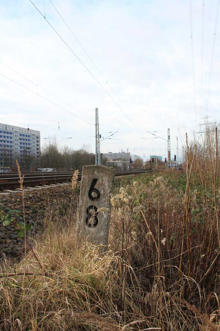 Rechts km 1,3 (Gegenrichtungsgleis) der Wriezener Bahn