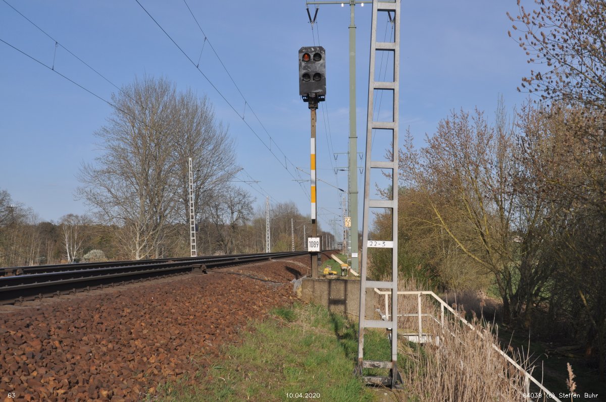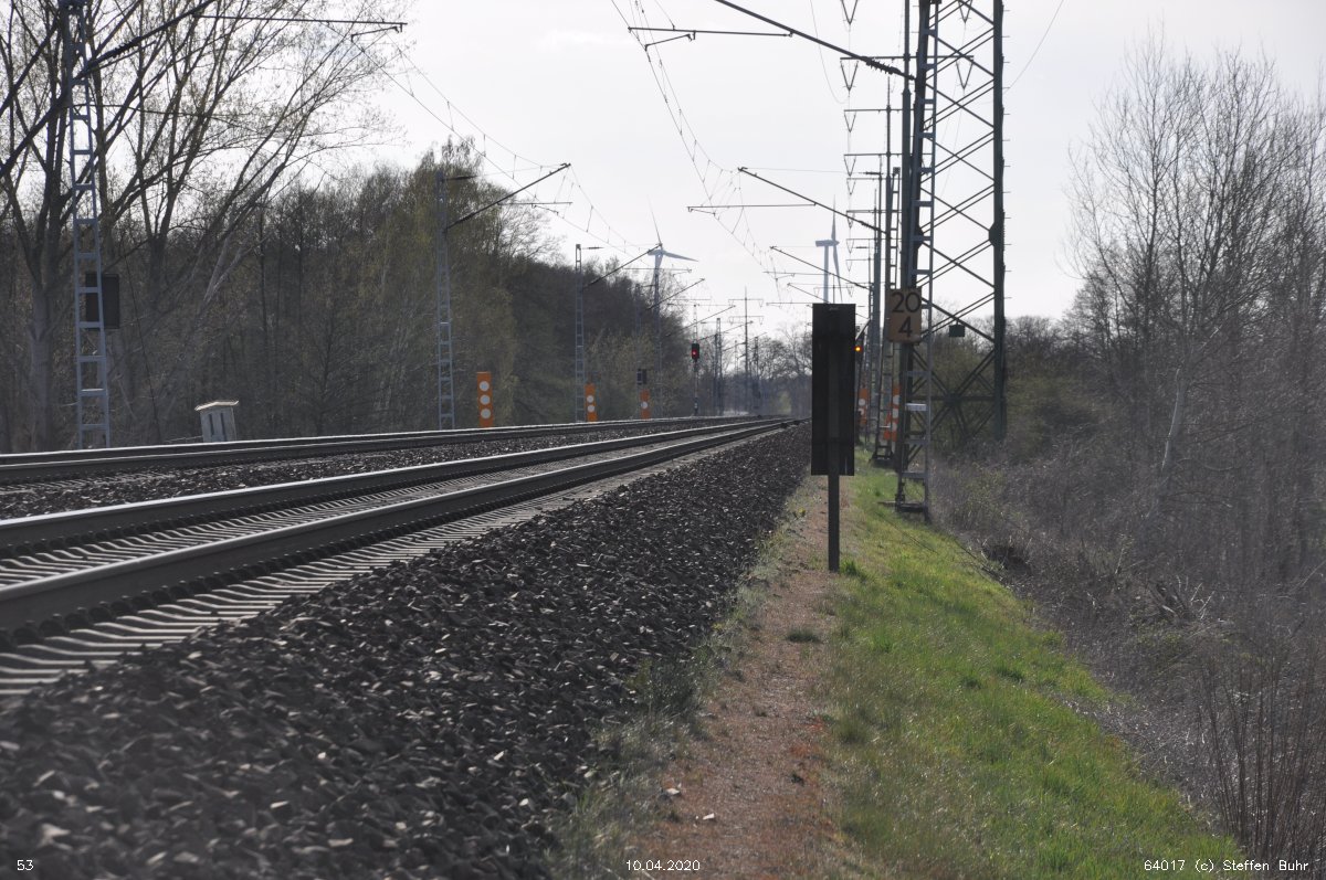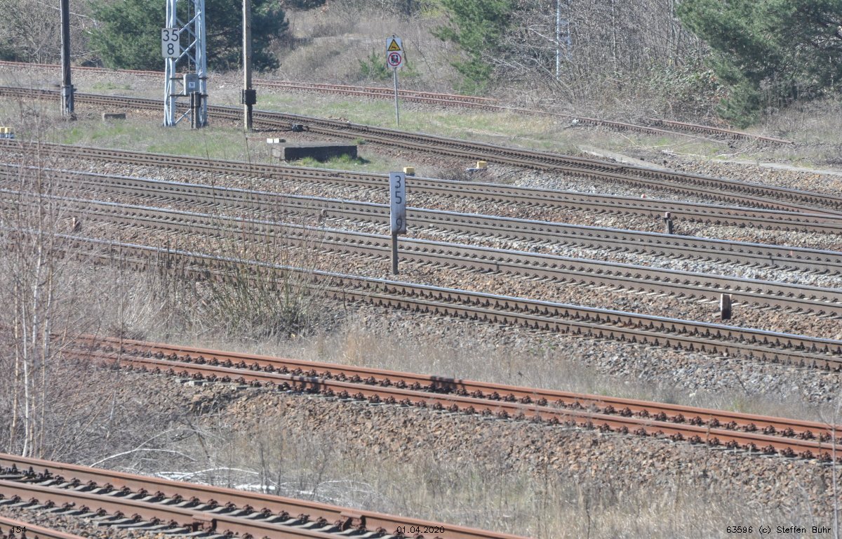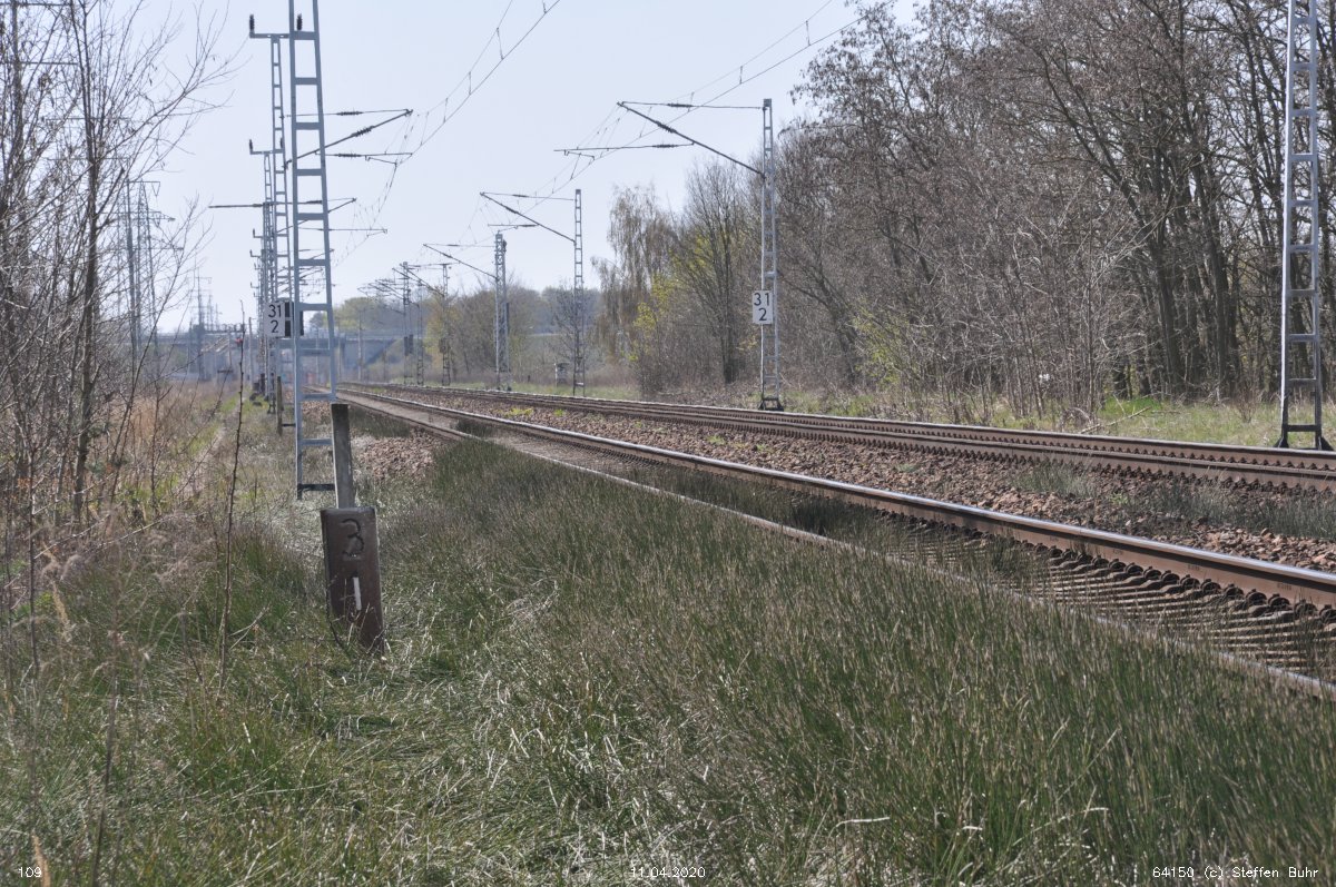 | Abzw. | Verbindungskurve nach Birkenwerder [Strecke Berlin Nordbahnhof (alt) 0,0 - Neustrelitz 98,53 - Neubrandenburg 133,73 - Stralsund 222,64 (kommend)/223,60 (gehend) - Saßnitz 272,72 - Saßnitz Hafen 274,46] | |