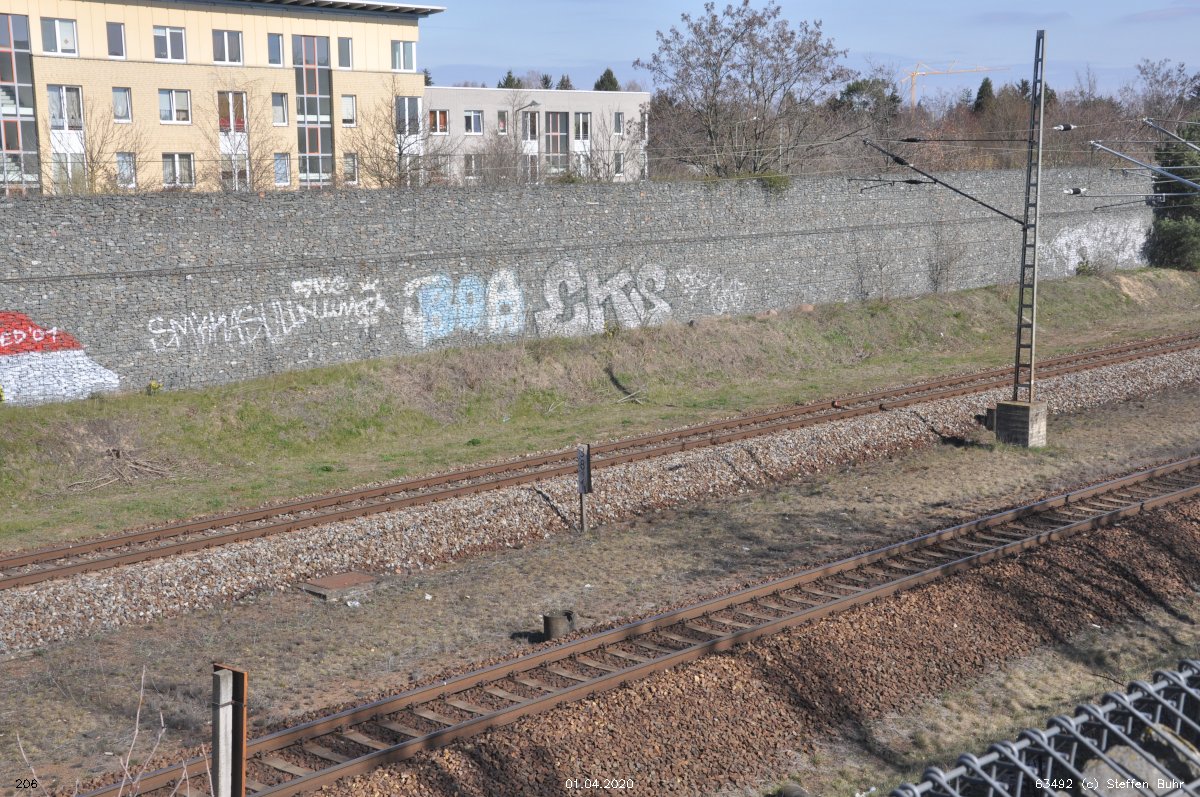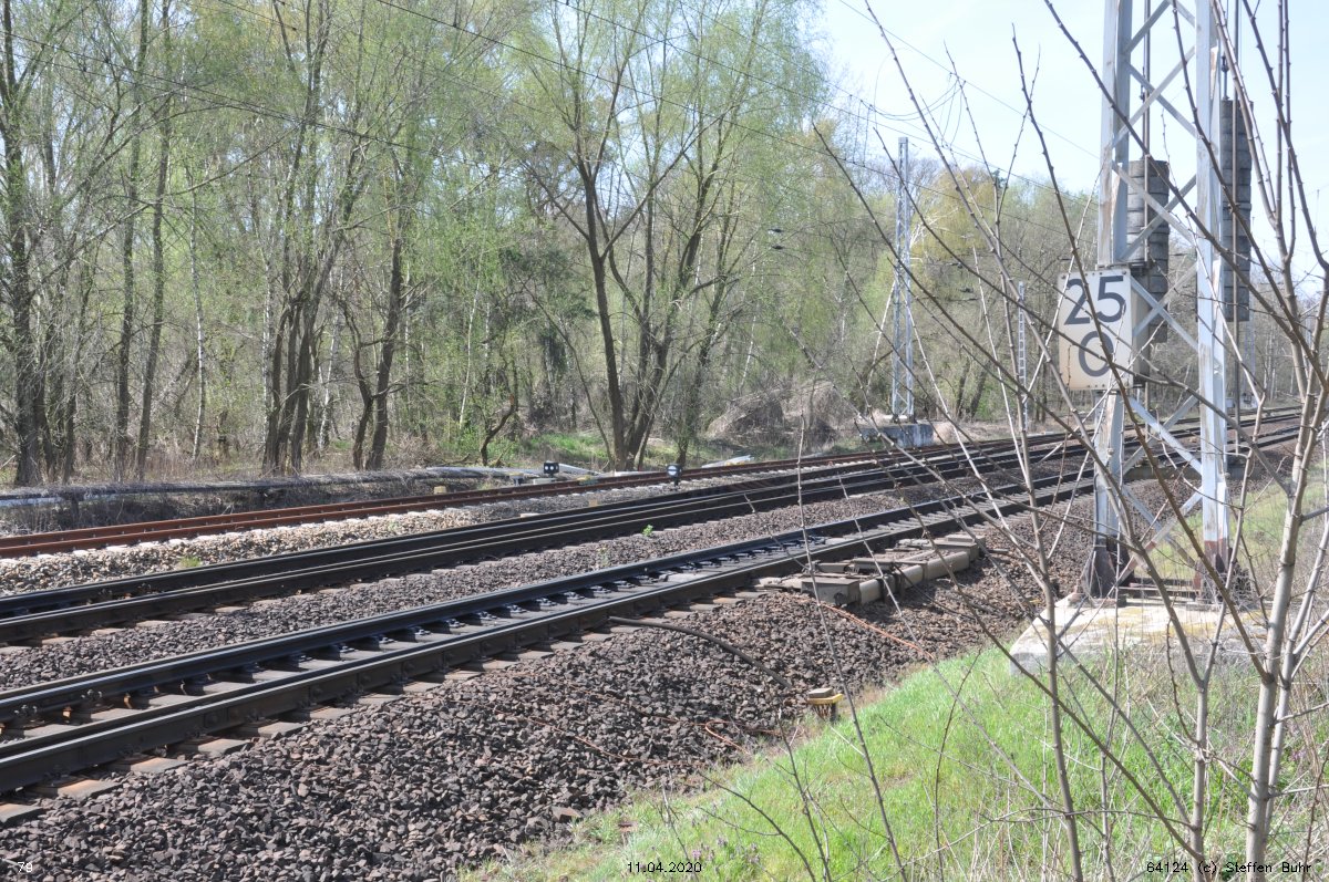 Links noch zu sehen km 0,4 der Strecke Abzw Grünauer Kreuz West - Abzw Grünauer Kreuz Süd (6145 - Gegenrichtungsgleis)