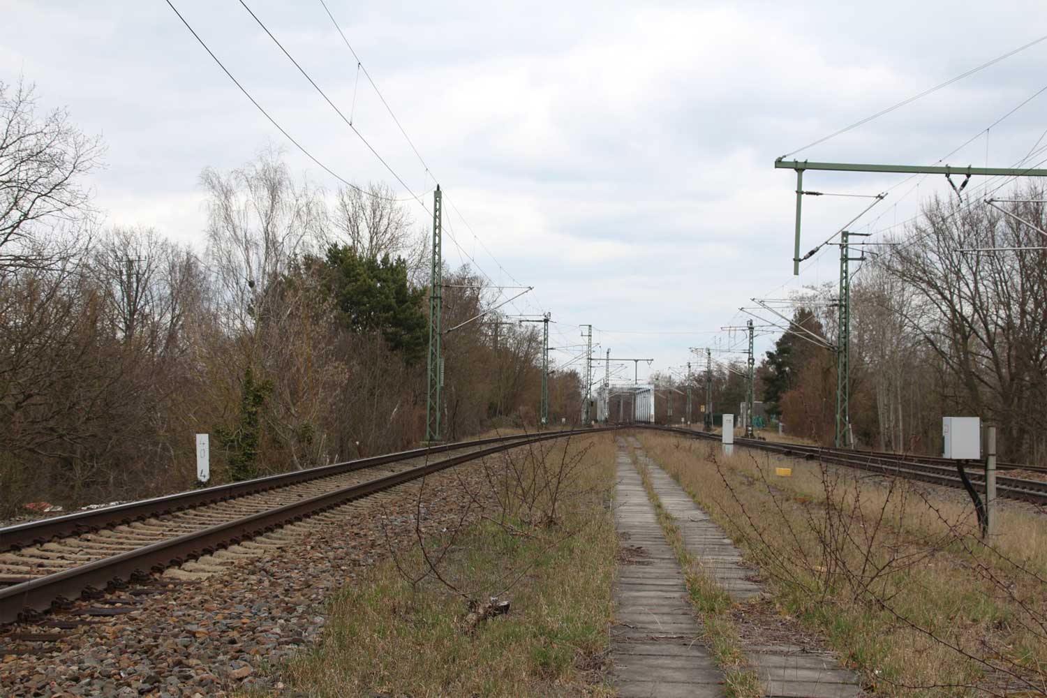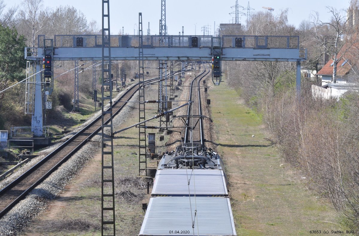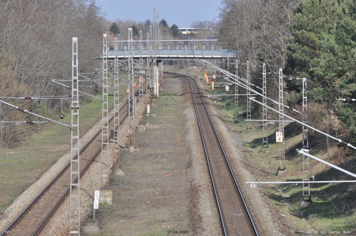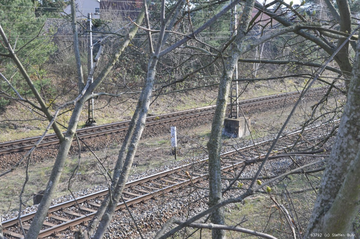 Links noch zu sehen km 1,3 der Strecke Abzw Grünauer Kreuz West - Abzw Grünauer Kreuz Süd (6145 - Richtungsgleis)