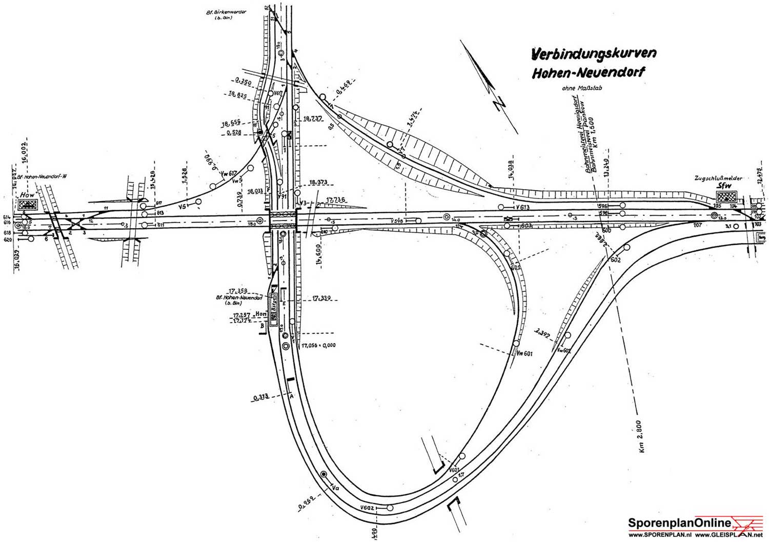 Hohen-Neuendorf mit den Verbindungskurven - Zustand ca. 1967 Quelle: www.sporenplan.nl