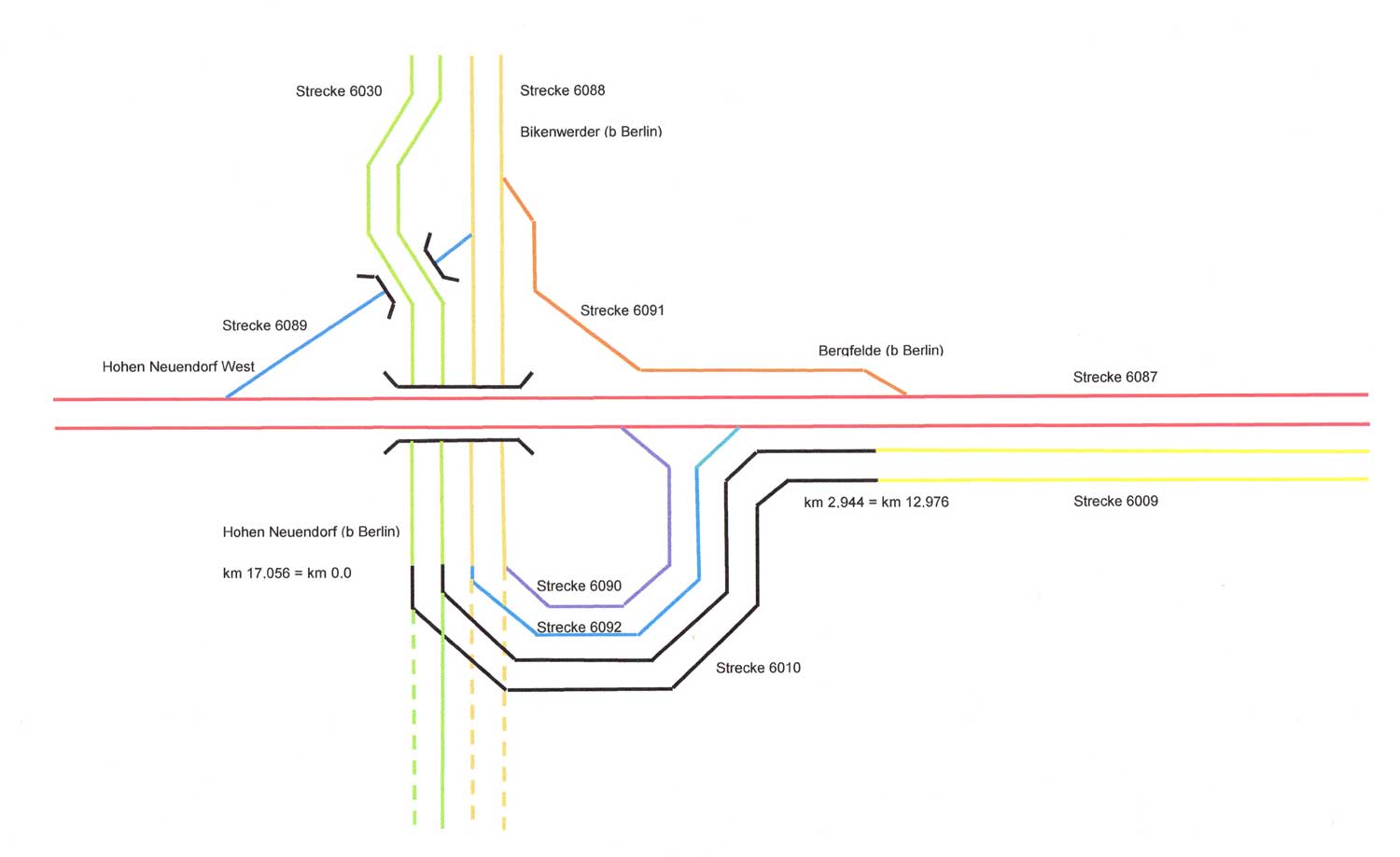 Abzw Bergfelde Ost Die Strecke 6090 hat den Plänen nach eine negative