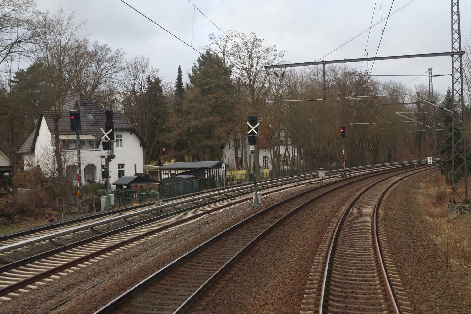 km 1,4 und km 1,5 Links zwei Gleise der Strecke