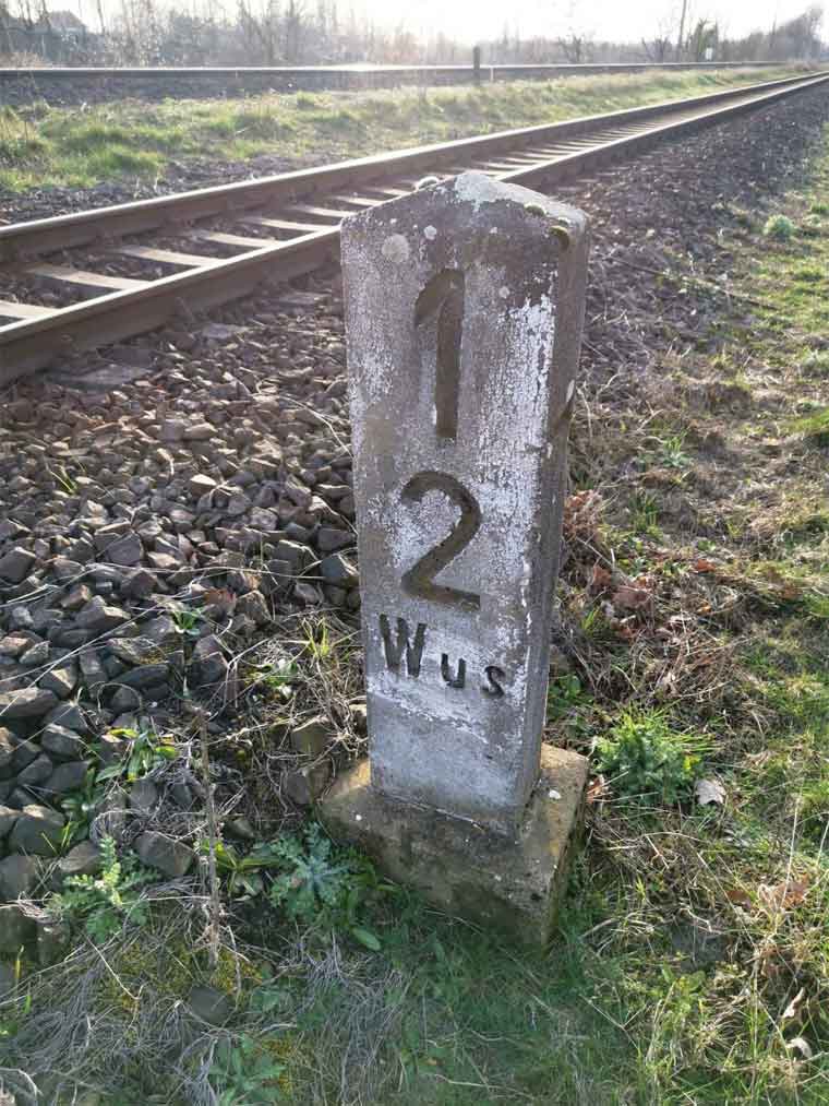 km 1,7 (liegender Stein) in Wustermark Rbf km 2,2 gehört zur Strecke