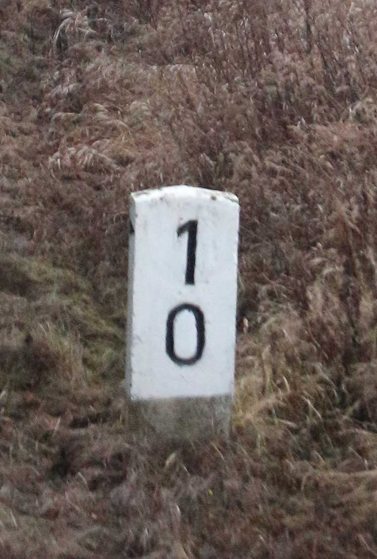 km 0,0 (Le) an der rot markierten Strecke (Einfahrten von der