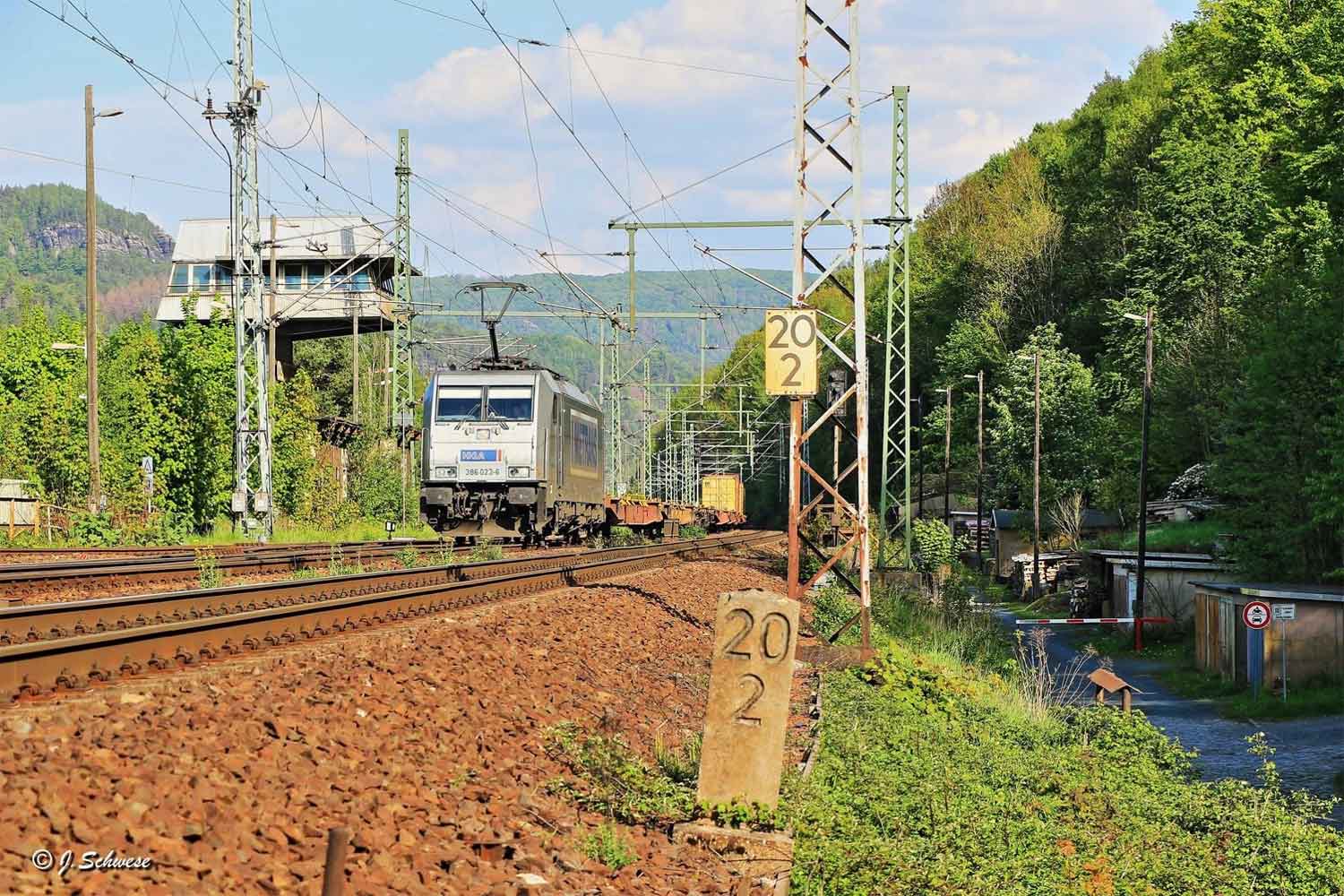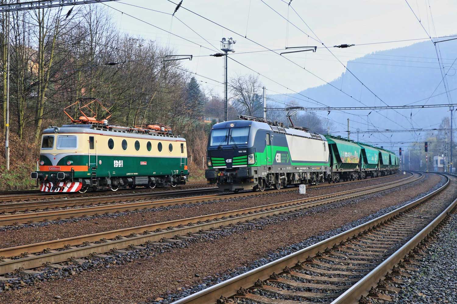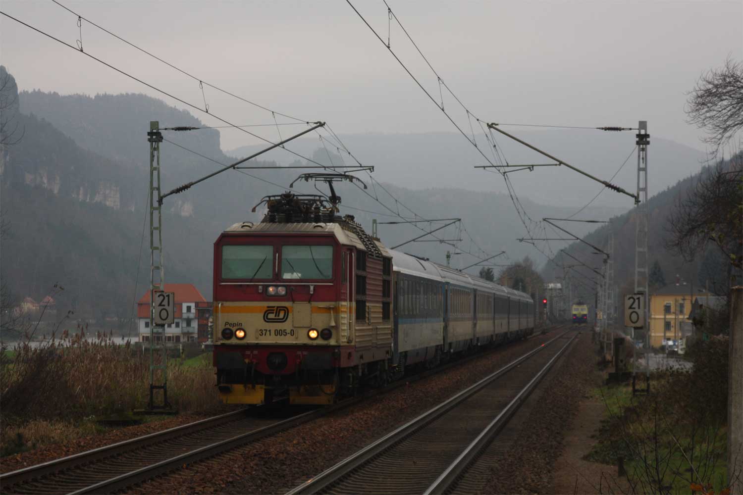 km 3,7 und km 3,8 in Děčín-Prostřední Žleb (Mittelgrund) - 193 292 mit EC 171