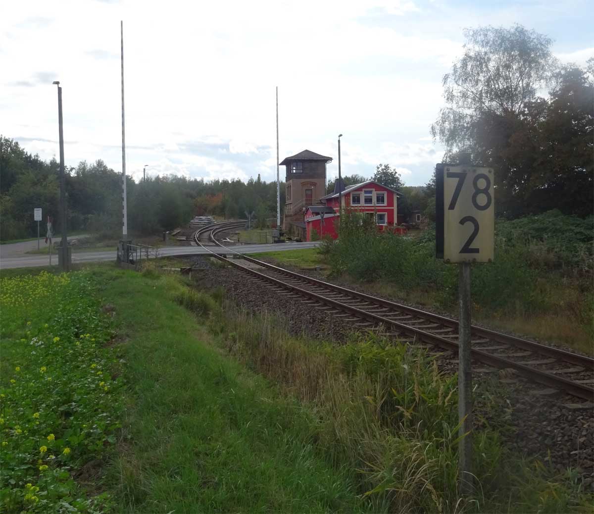 Links abgehend die Strecke Beucha 0,0 - Trebsen (Mulde) 16,75