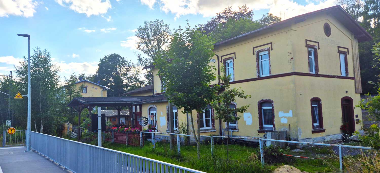 km 75,59 der Strecke Leipzig Bayerischer Bf 0,12 - Altenburg Hbf 38,63 - Werdau 73,81 - Reichenbach (Vogtl) 90,96 - Plauen ob. Bf 116,11 - Hof (Saale) 164,8 (LH)
