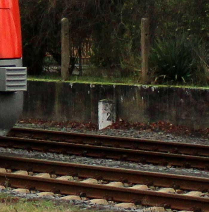km 63,9 (Stein) und km 64,0 (Tafel) gehören zur Strecke
