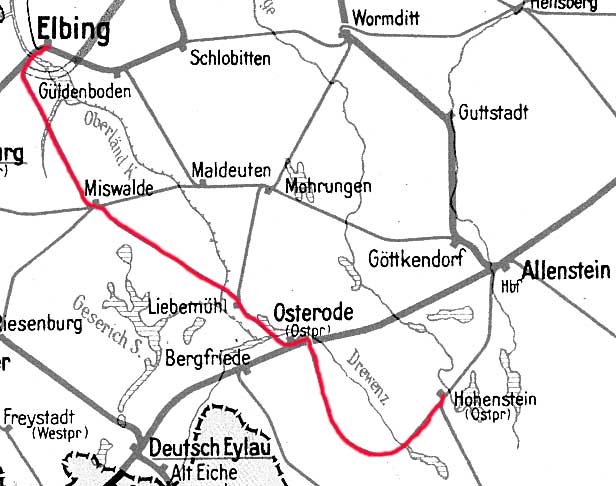 Elbing 0,0 - Osterode (Ostpr) 75,93 - Hohenstein (Ostpr) 116,64