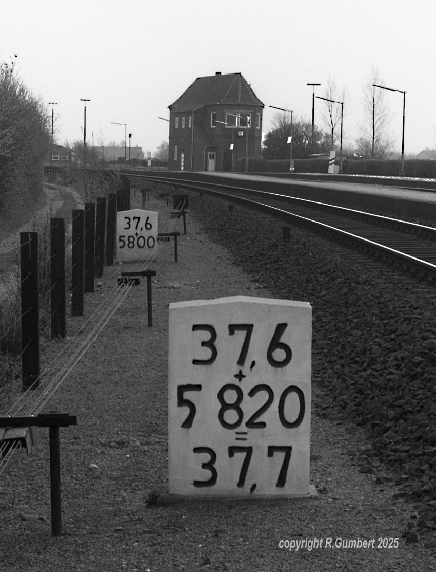 Niebüll 162,00 - Süderlügum 171,56 - Grenze Deutschland/Dänemark 175,29 = [km 67,9 - Tønder 64,0 - Bramminge 0,0] (1984)