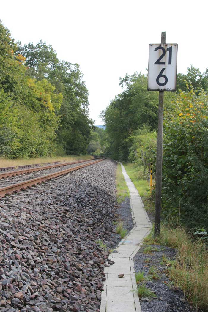 km 65,7 (Stein) und km 65,8 (Stein und Tafel) am Abzw Uffeln - Blick Richtung Löhne