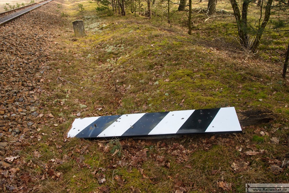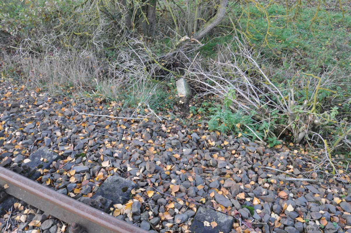 | km 95,01 der Strecke Halle (Saale) Hbf -0,31 - Eilenburg 49,28 - Falkenberg (Elster) (oben) 95,01 - Cottbus 174,00 - km 176,70 = km 0,0 - km 11,37 = km 186,61 - Peitz Ost 188,15 - Guben 211,53 (6345) | ||