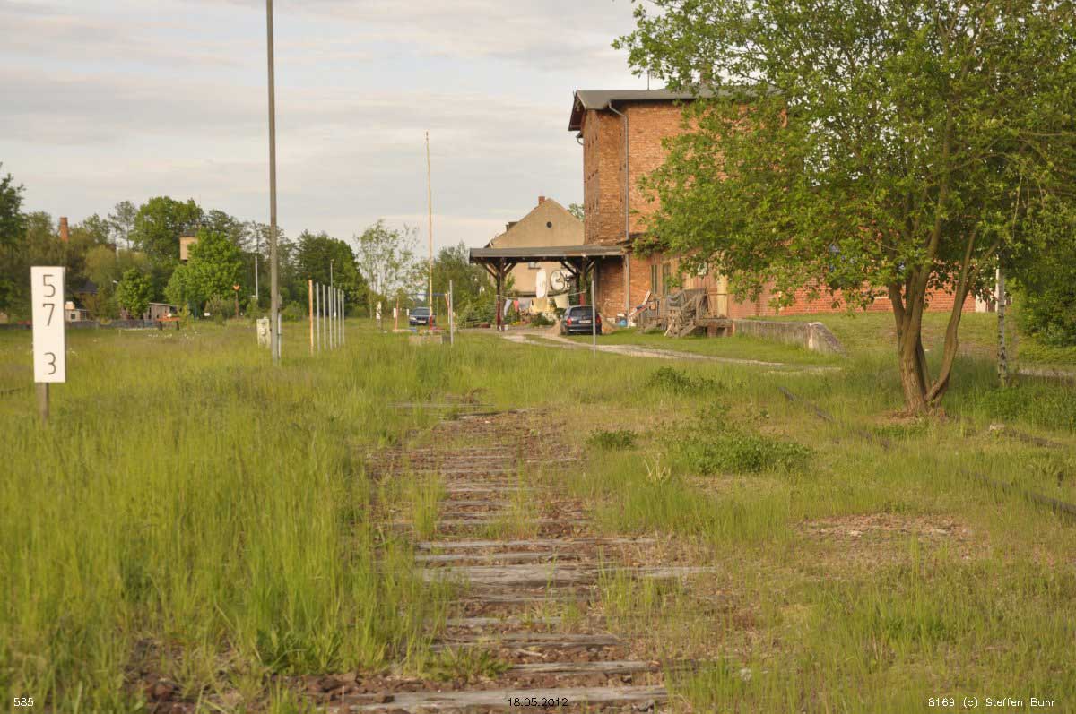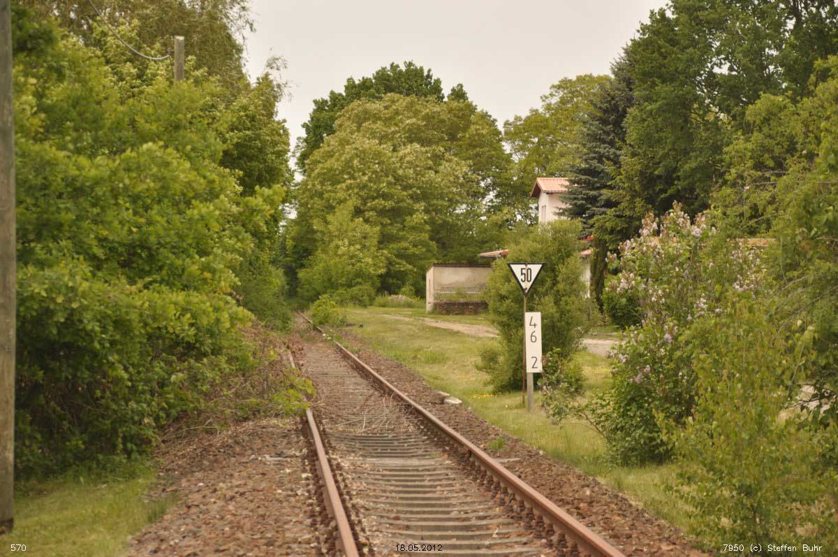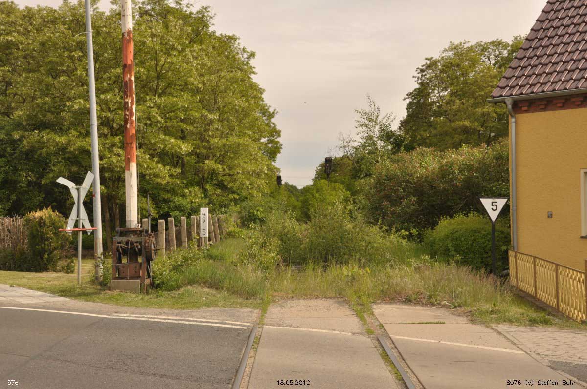 | Luckau-Uckro | 49,40 | km 76,00 der Strecke [Berlin Anhalter Bf (bis 1882 Berlin Dresdner Bf) 0,01] - Abzw Berlin-Mariendorf 6,87 - Elsterwerda 122,75 - ehemalige preußisch-sächsische Landesgrenze km 124,56 = km 50,36 - Großenhain Berliner Bf 33,52 - Dresden-Friedrichstadt 0,26 (6135/6248) |