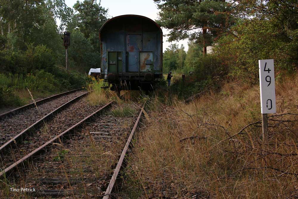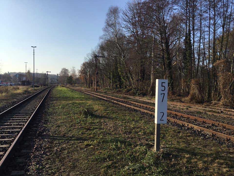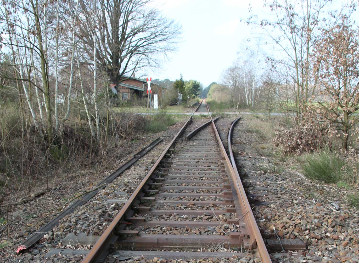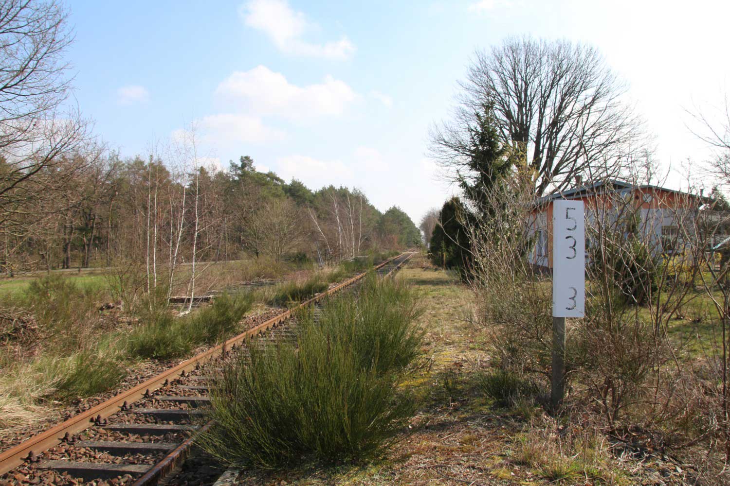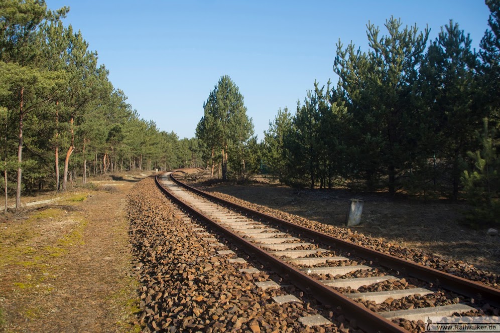 Links das Gleis der Strecke Grunow (Niederlaus) 0,0 - Beeskow 9,41 - Königs-Wusterhausen 58,04