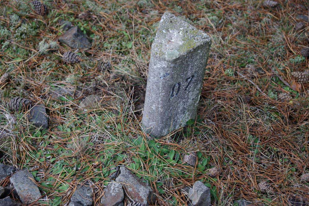 Könnte ein ebenfalls Kilometerstein sein, Abstand zum vorhergenden Stein ca. 100 m