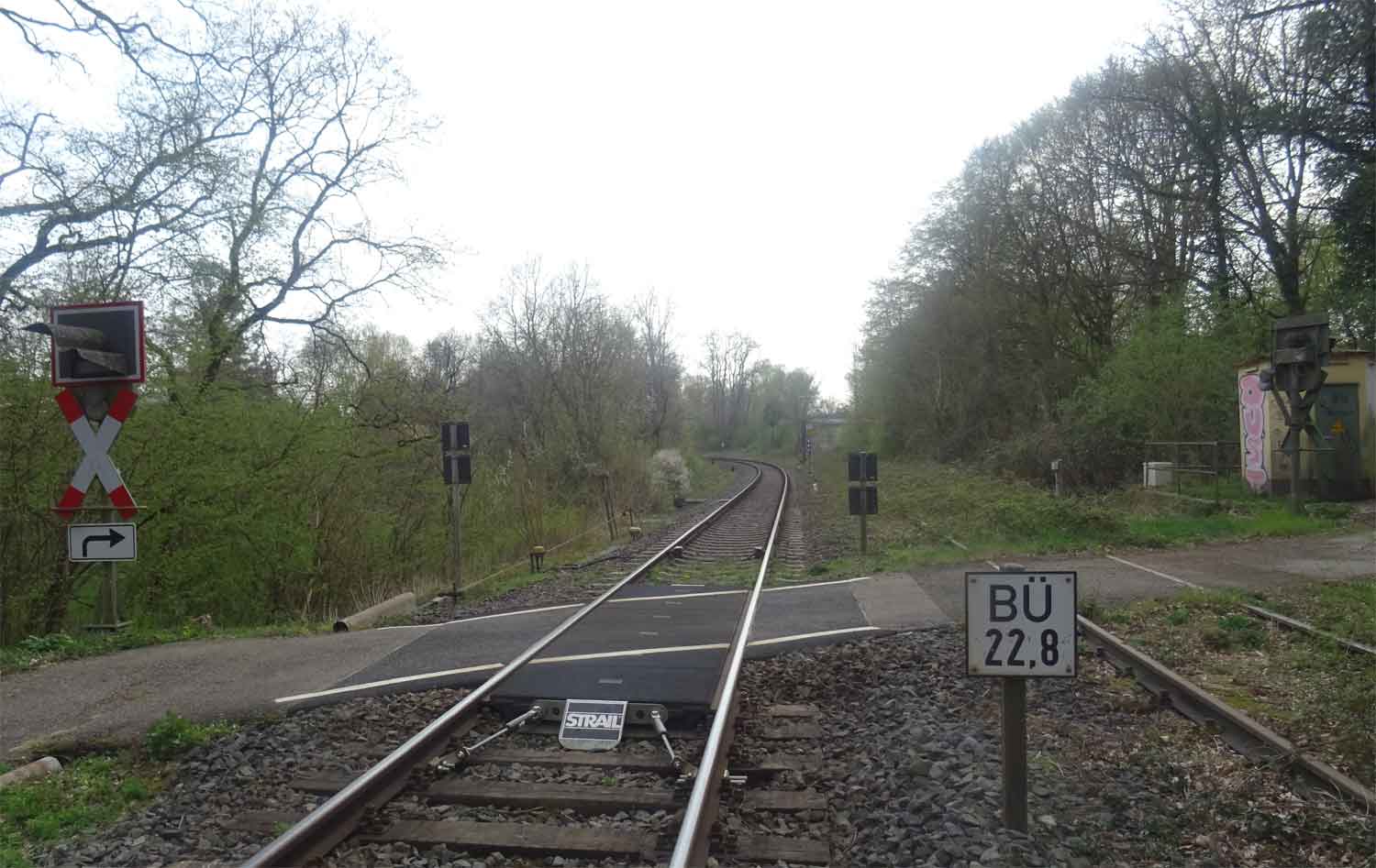 km 21,9 in Hungen mit Stellwerk Ho - Blick Richtung Gelnhausen