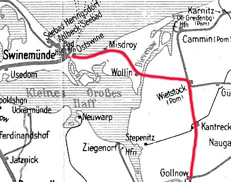 Gollnow 0,0 - Wietstock (Pom) 30,27 - Ostswine 76,77 - Fähre 77,90 - Fähre 78,62 - Swinemünde Hbf 80,53