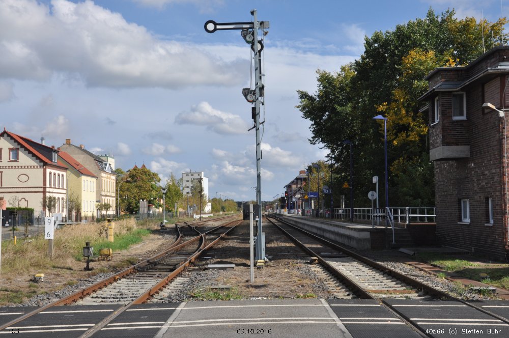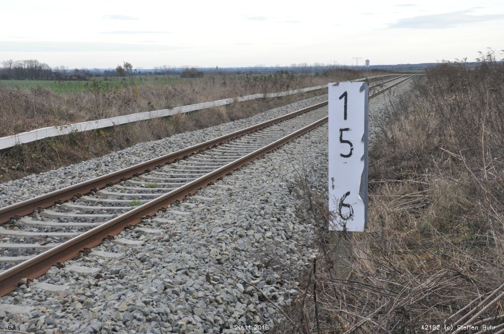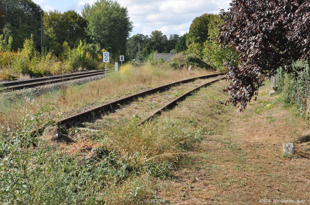 | km 113,662 der Strecke Falkenberg (Elster) 0,31 - Luckau-Uckro 49,40 - Lübben (Spreewald) 73,52 - Tauche (b Beeskow) 105,45 - Streckenunterbrechung - Beeskow 113,66 (6826) | ||