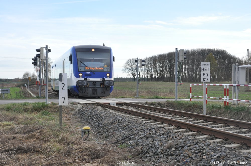 | km 113,662 der Strecke Falkenberg (Elster) 0,31 - Luckau 57,39 - Beeskow 113,662 [Niederlausitzer Eisenbahn (NLE)] | ||