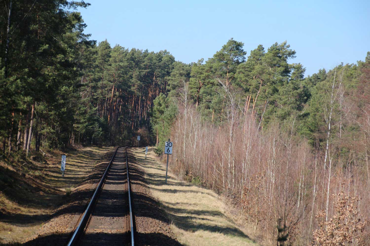 km 32,2 zwischen Wendisch Rietz (früher: Scharmützelsee) und Hubertushöhe - Blick Richtung Königs Wusterhausen