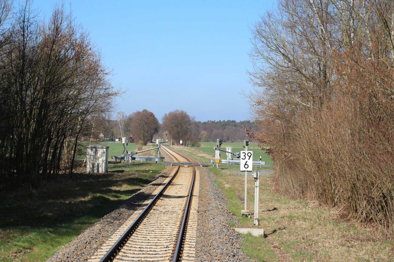BÜ km 3,6 in Schneeberg (Mark) - Blick Richtung Königs Wusterhausen