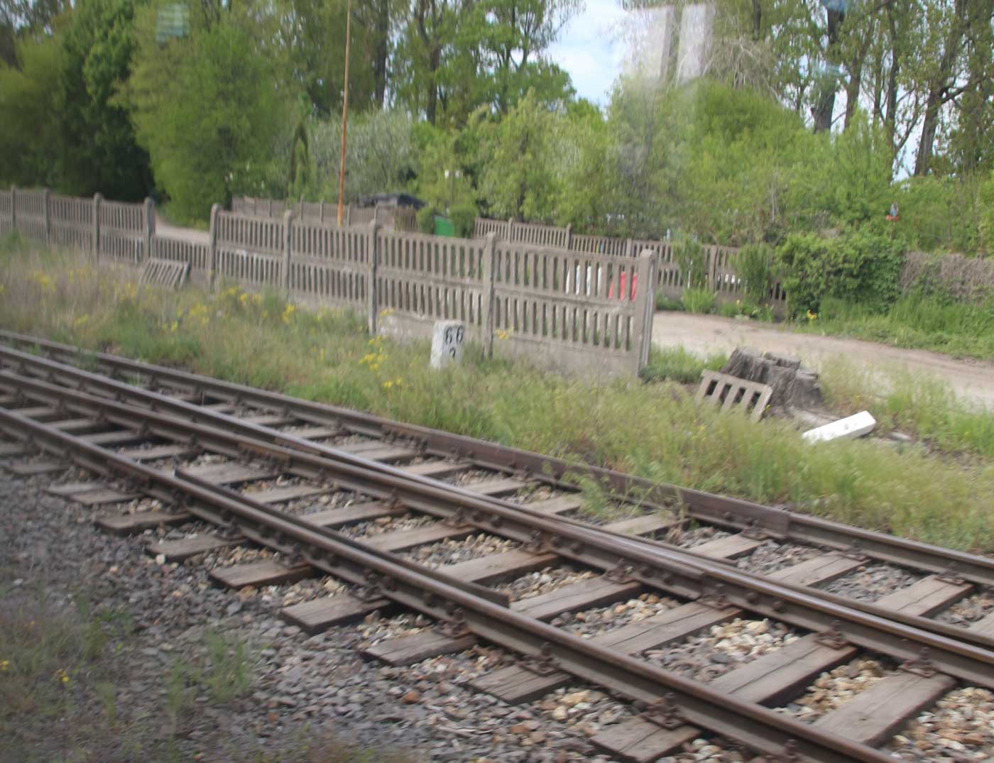 Das vom Gras verdeckte mittlere Gleis gehört zur ehemaligen Strecke Sulechów (Züllichau) 0,0 - Świebodzin (Schwiebus) 26,129