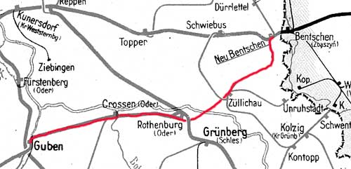 Guben 0,0 - Rothenburg (Oder) 52,17 - Neubentschen 95,99 (1938)