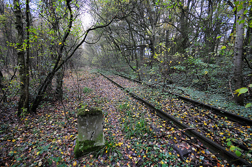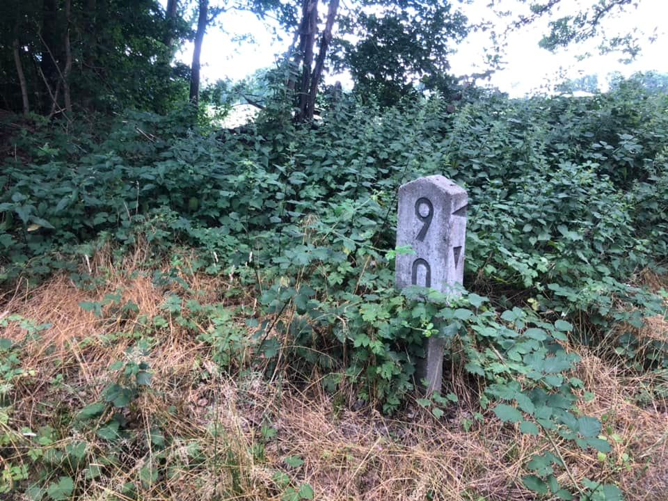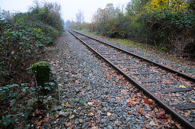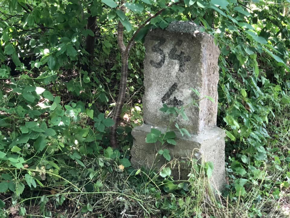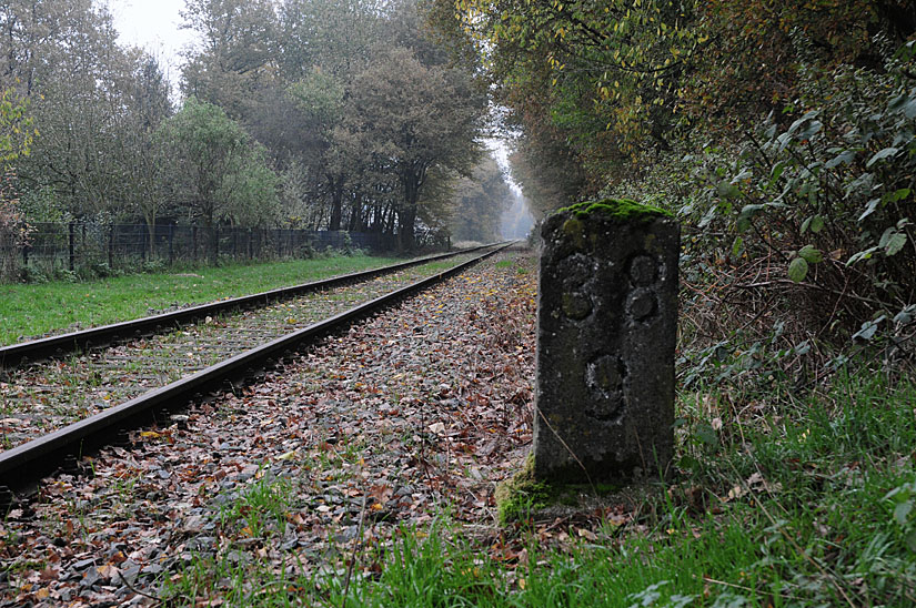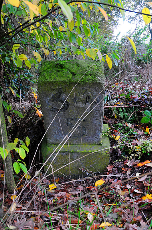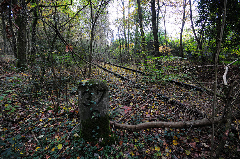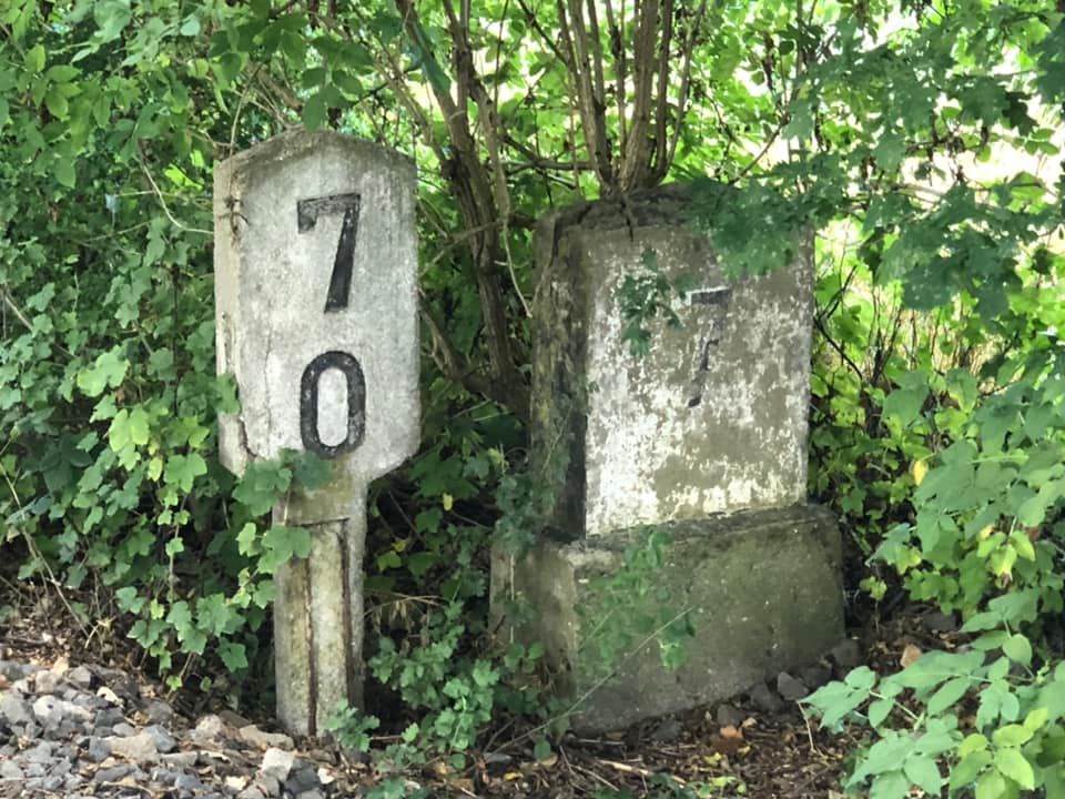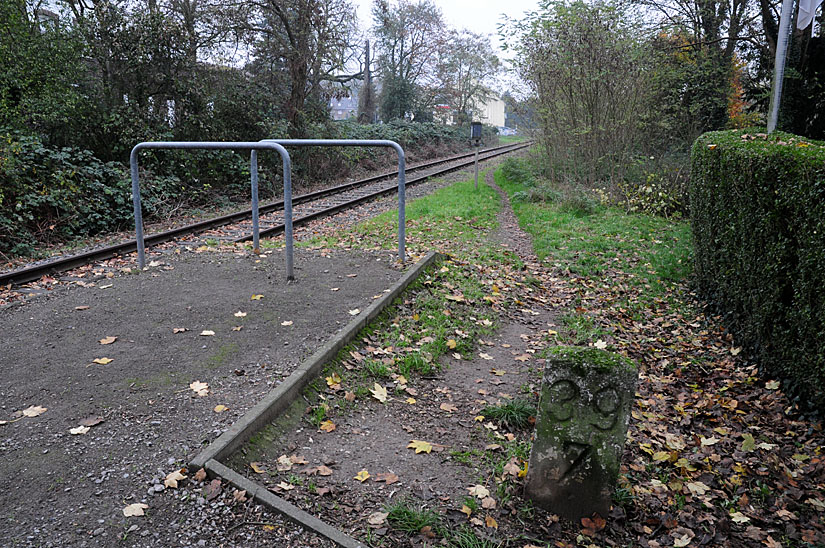Rechts wahrscheinlich der Stein aus der Zeit des Bahnbaues