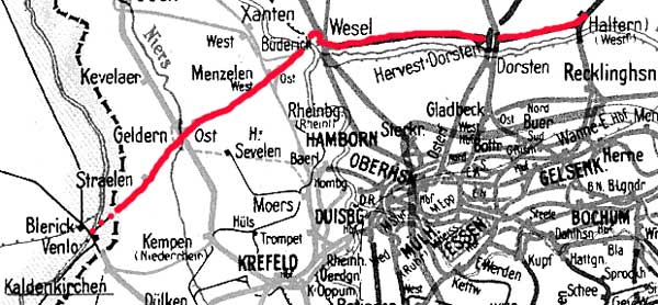 Haltern (Westf) 0,0 - Wesel 41,12 - Menzelen West (tief) 53,90 - Geldern Ost 68,98 - Staatsgrenze Deutschland/Niederlande 84,91 - (Venlo 90,2)