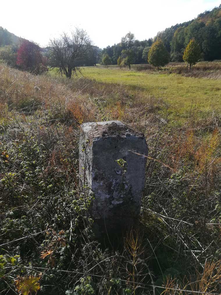 km 70,5 (Tafel und Stein) zwischen Moschheim und Montabaur - Blick Richtung Herborn