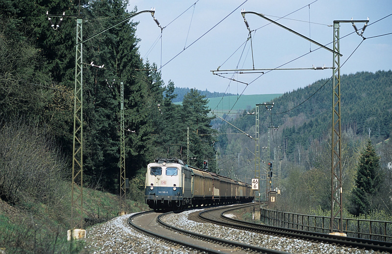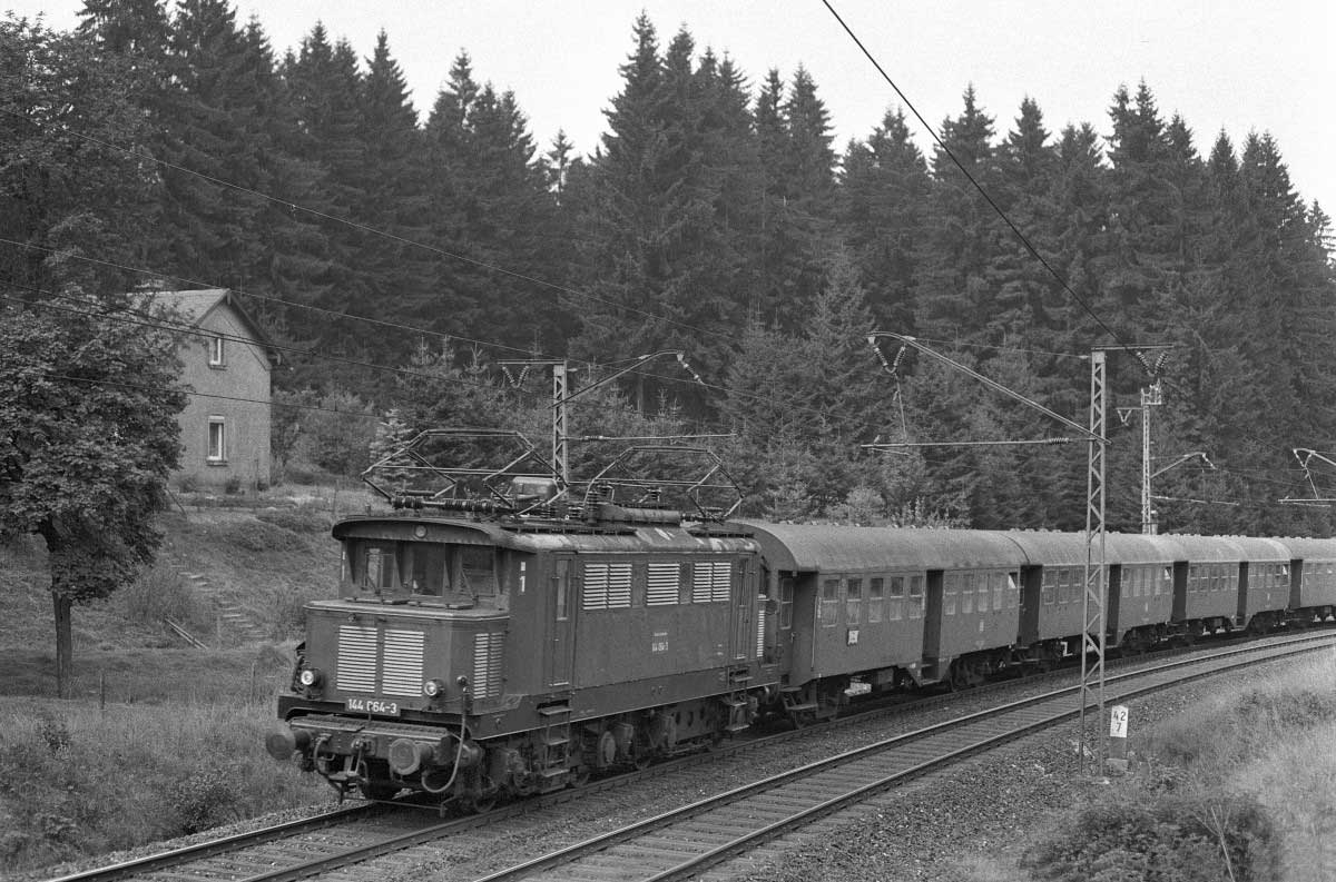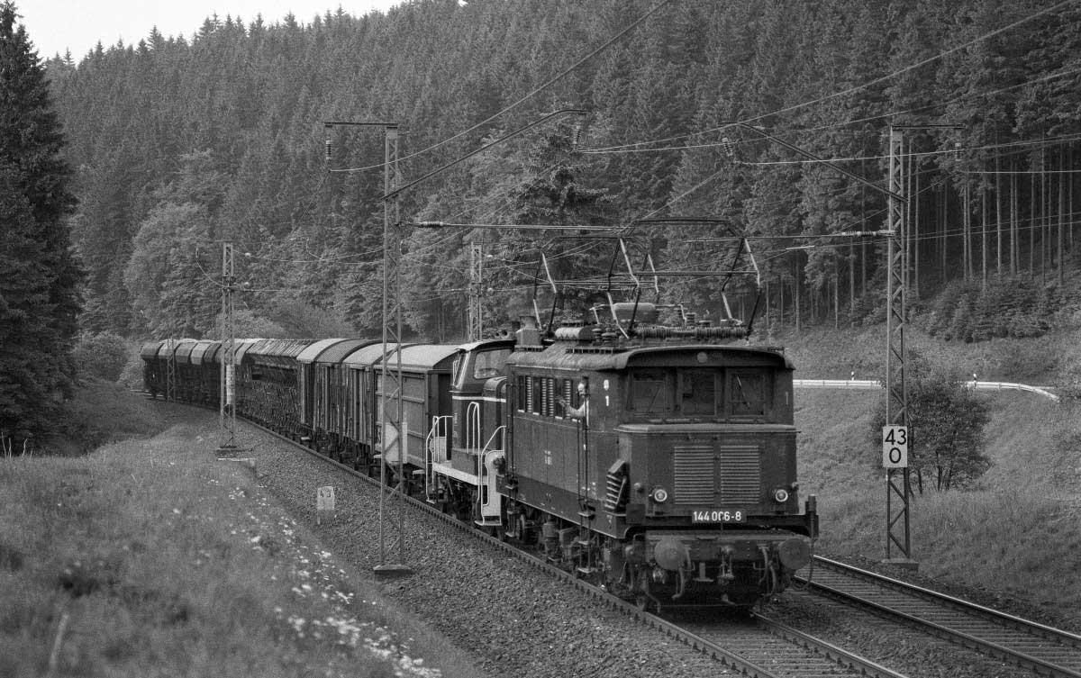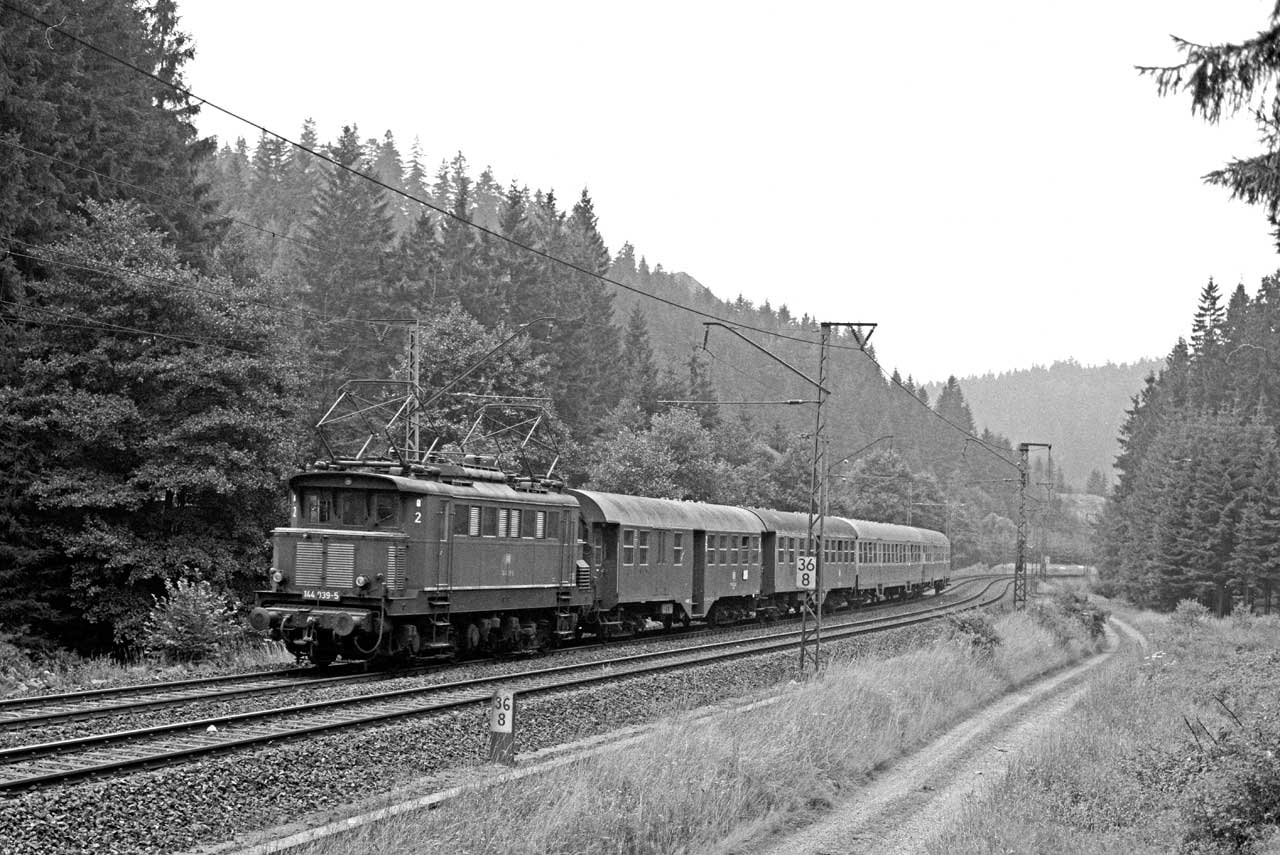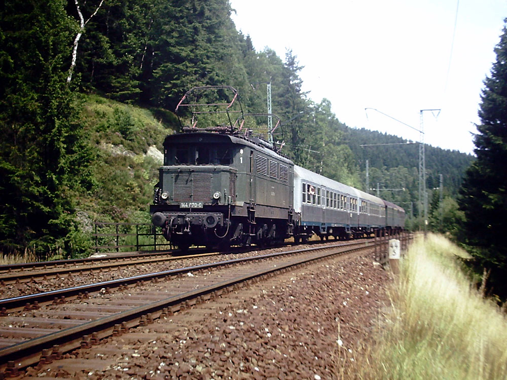 144 070 bei km 44,5 zwischen Steinbach am Wald und Ludwigstadt - Blick Richtung Probstzella - Leipzig