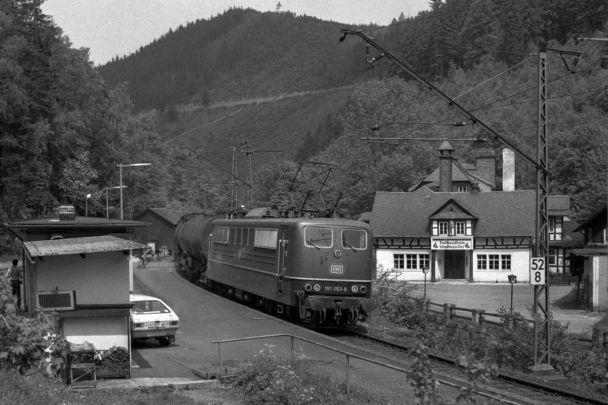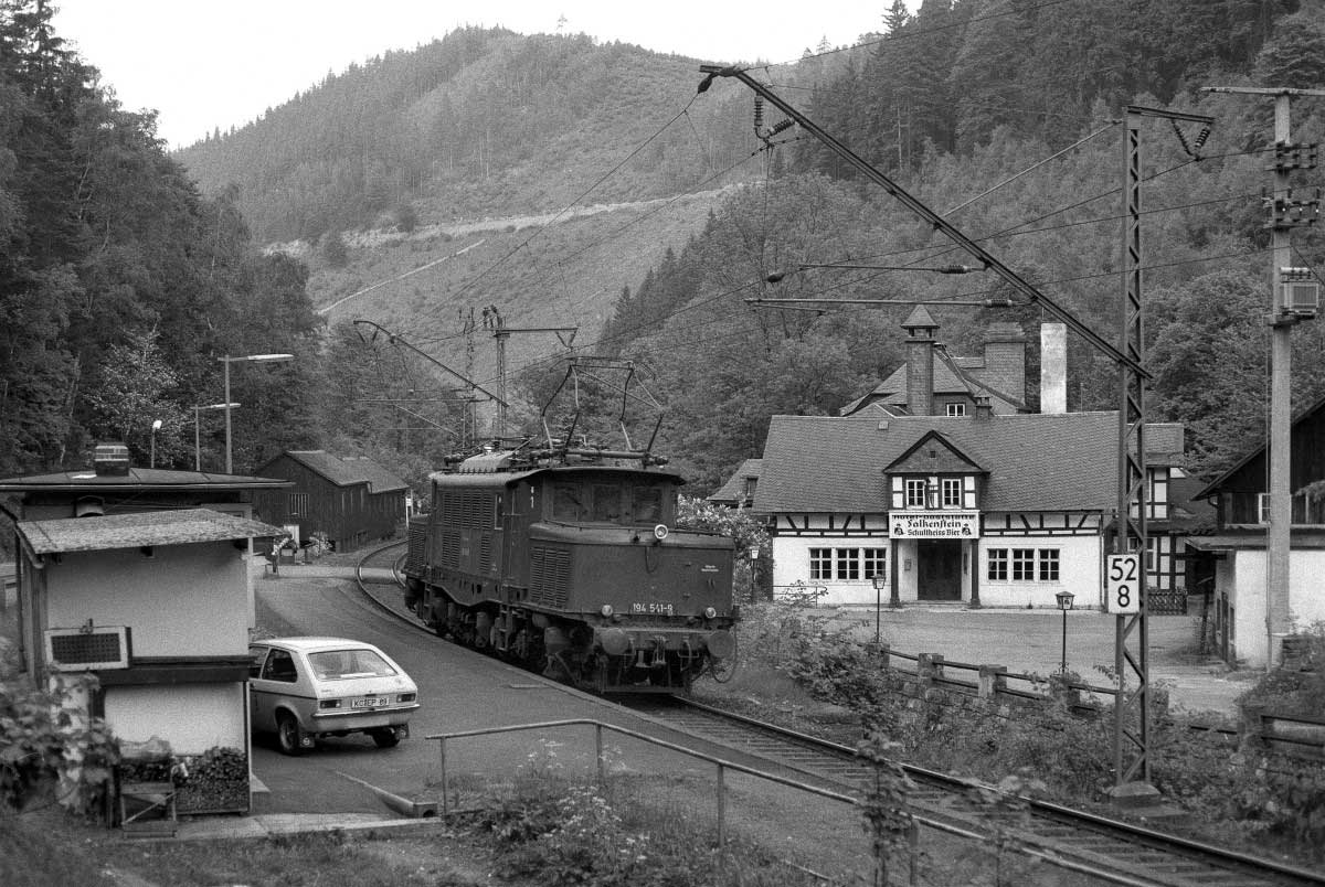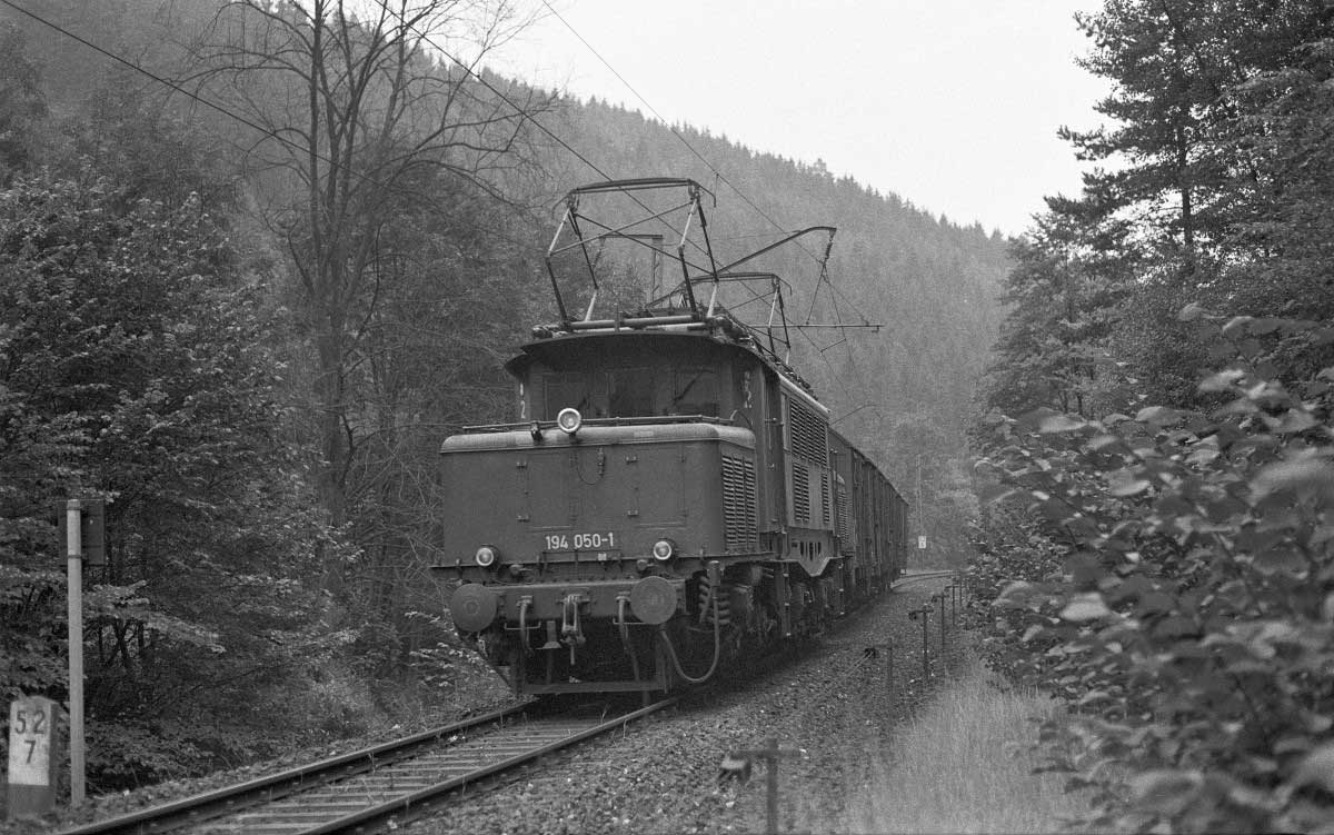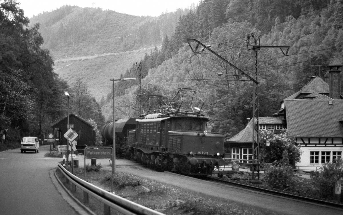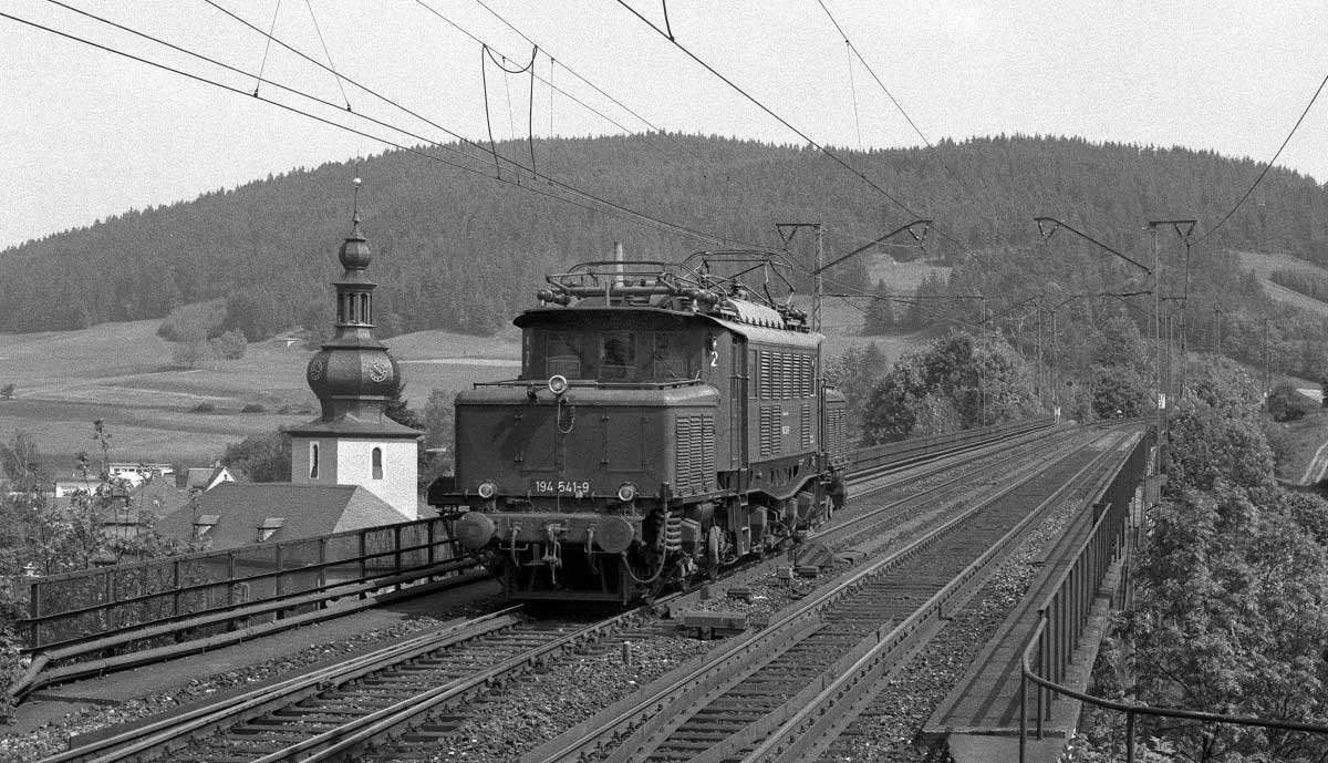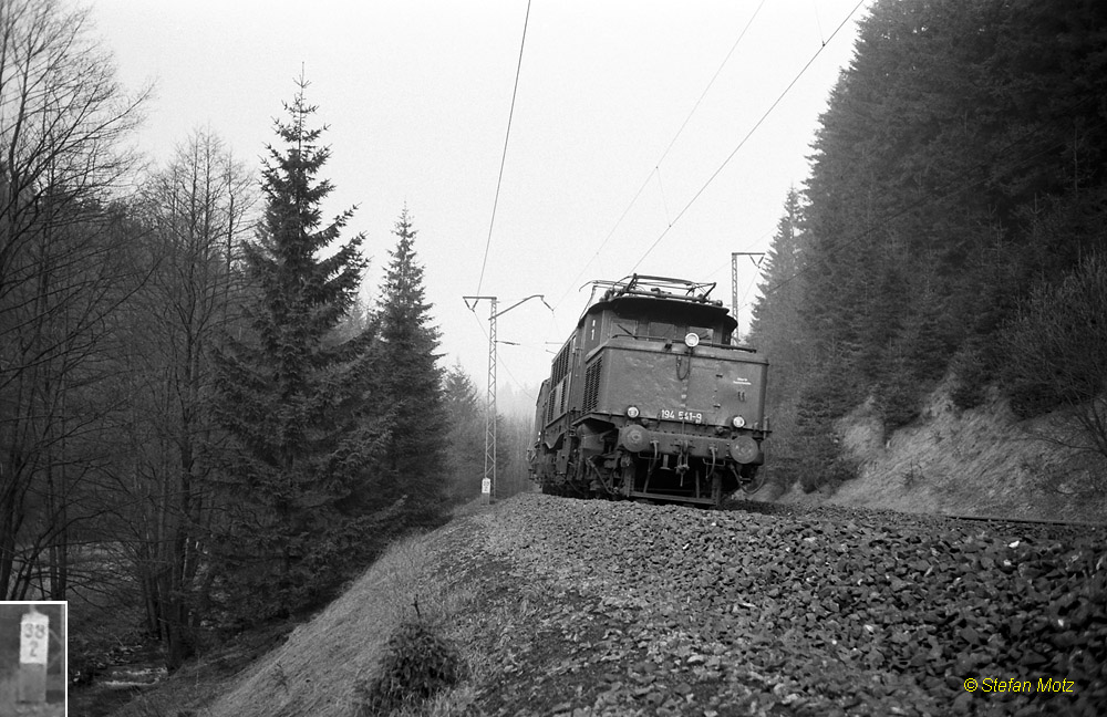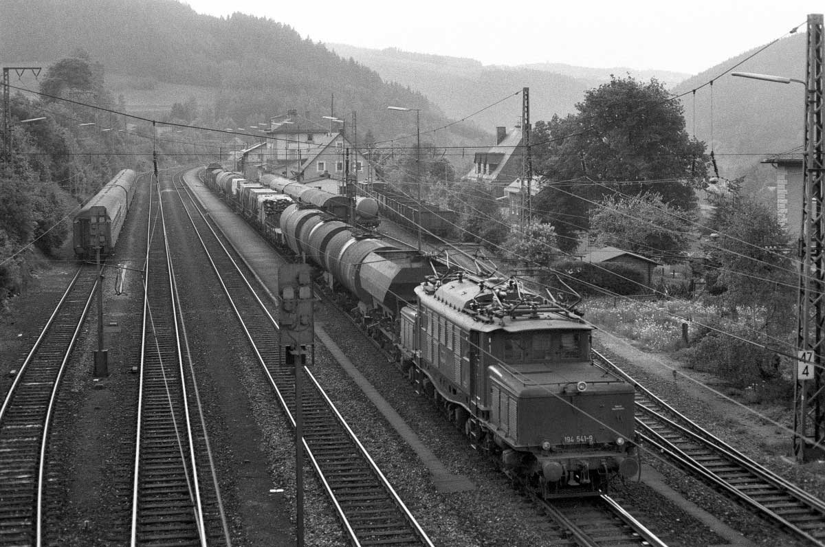 Falkenstein -Probstzella 194 541 mit N 6715 Links das Anschlussgleis zum E-Werk Bayern AG Foto: Karl-Hans Fischer, 24.04.1979 bei km 5,0 Wieder schön zu sehen rechts die