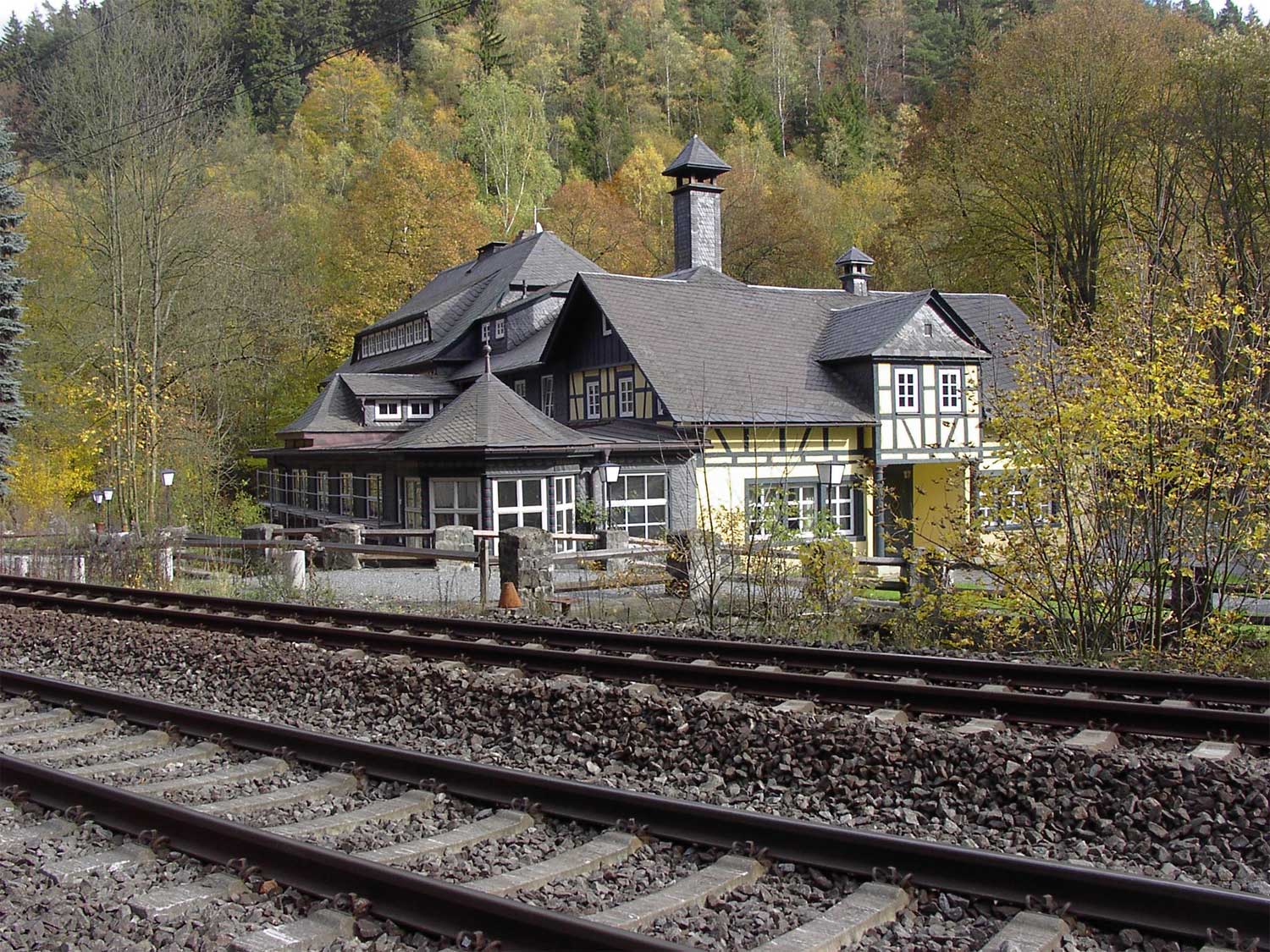 Im Vordergrund die ehemalige Strecke nach Lehesten