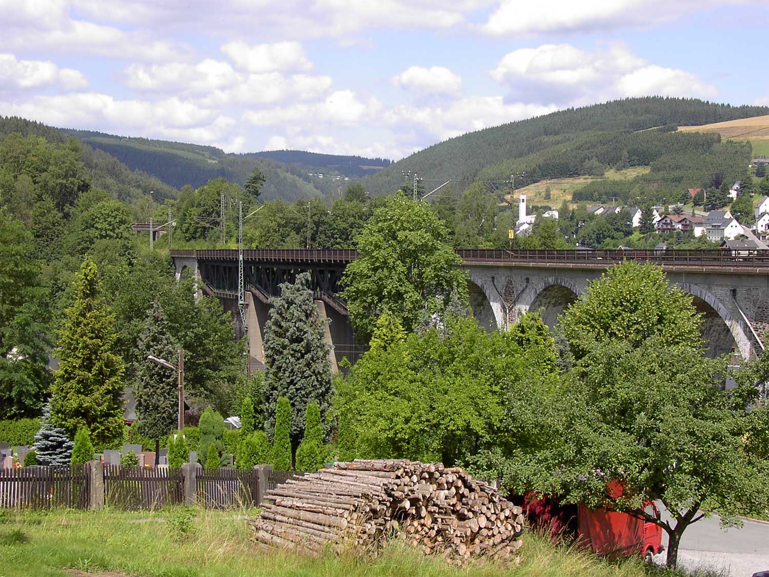 Sicht von der abzweigenden Strecke über den Trogenbachviadukt in Richtung Bf Ludwigsstadt