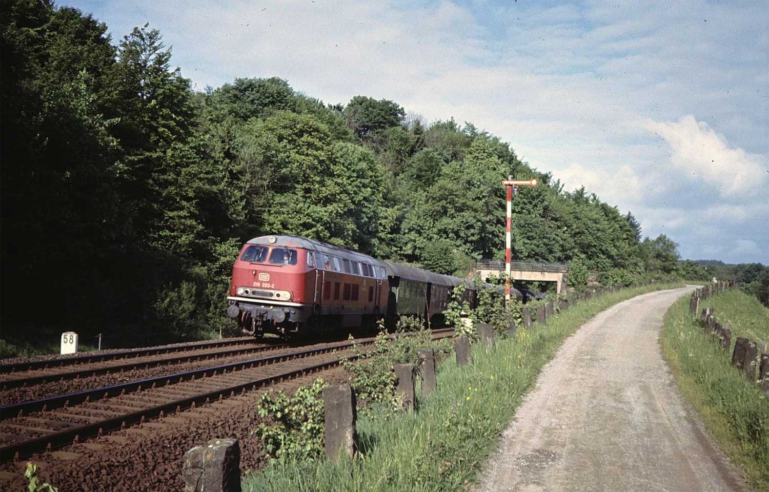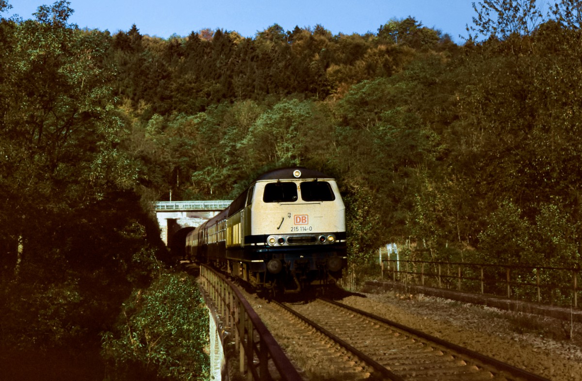 km 111,6 bei Mürlenbach - 215 029 mit D 2136 (Emden-Münster-Trier)