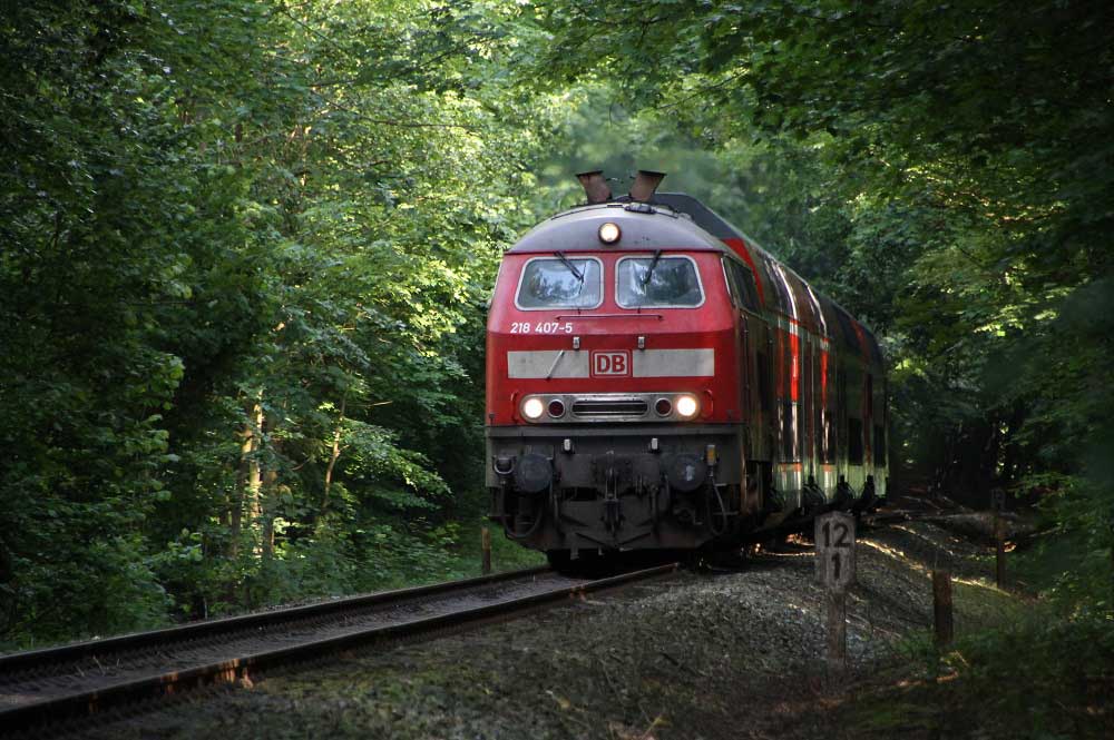 km 10,5 bei Raisdorf - 218 453 schiebt die RB 21496