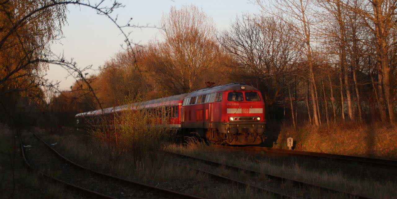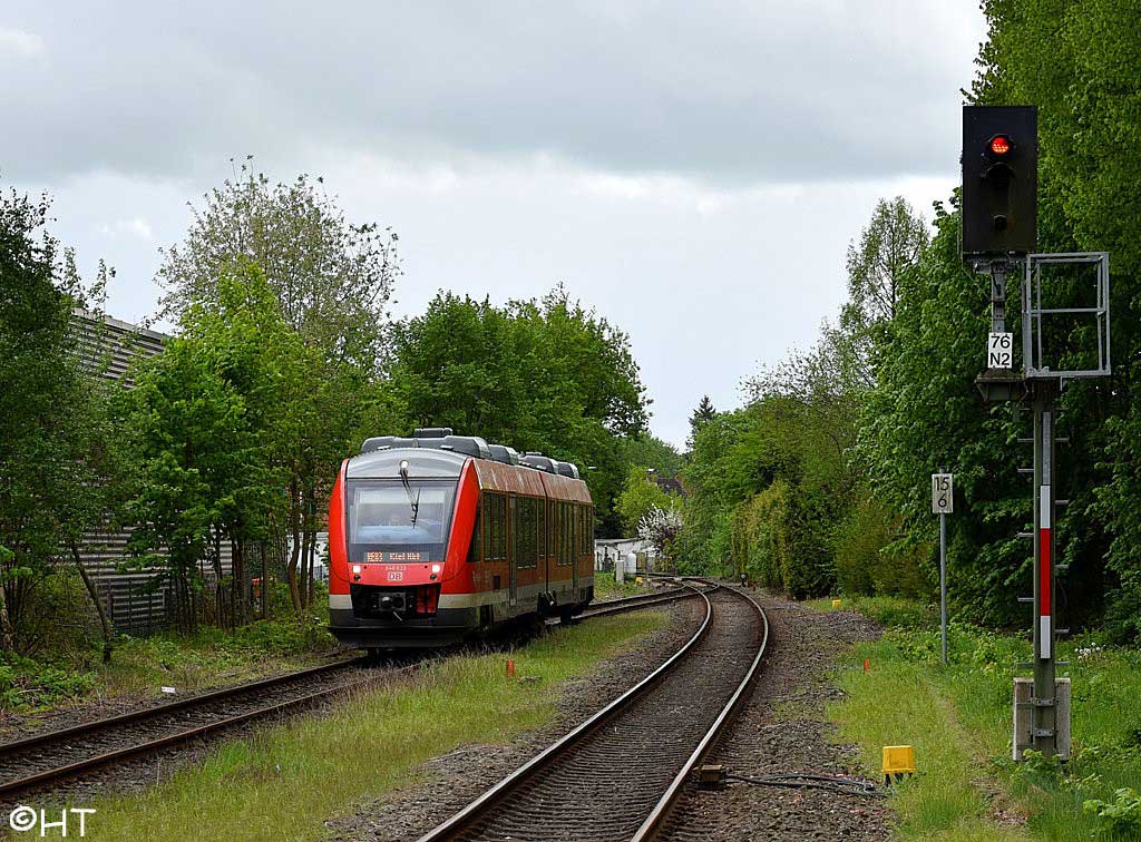 Der Zug befindet sich auf der Strecke Kiel Hbf - Ascheberg,