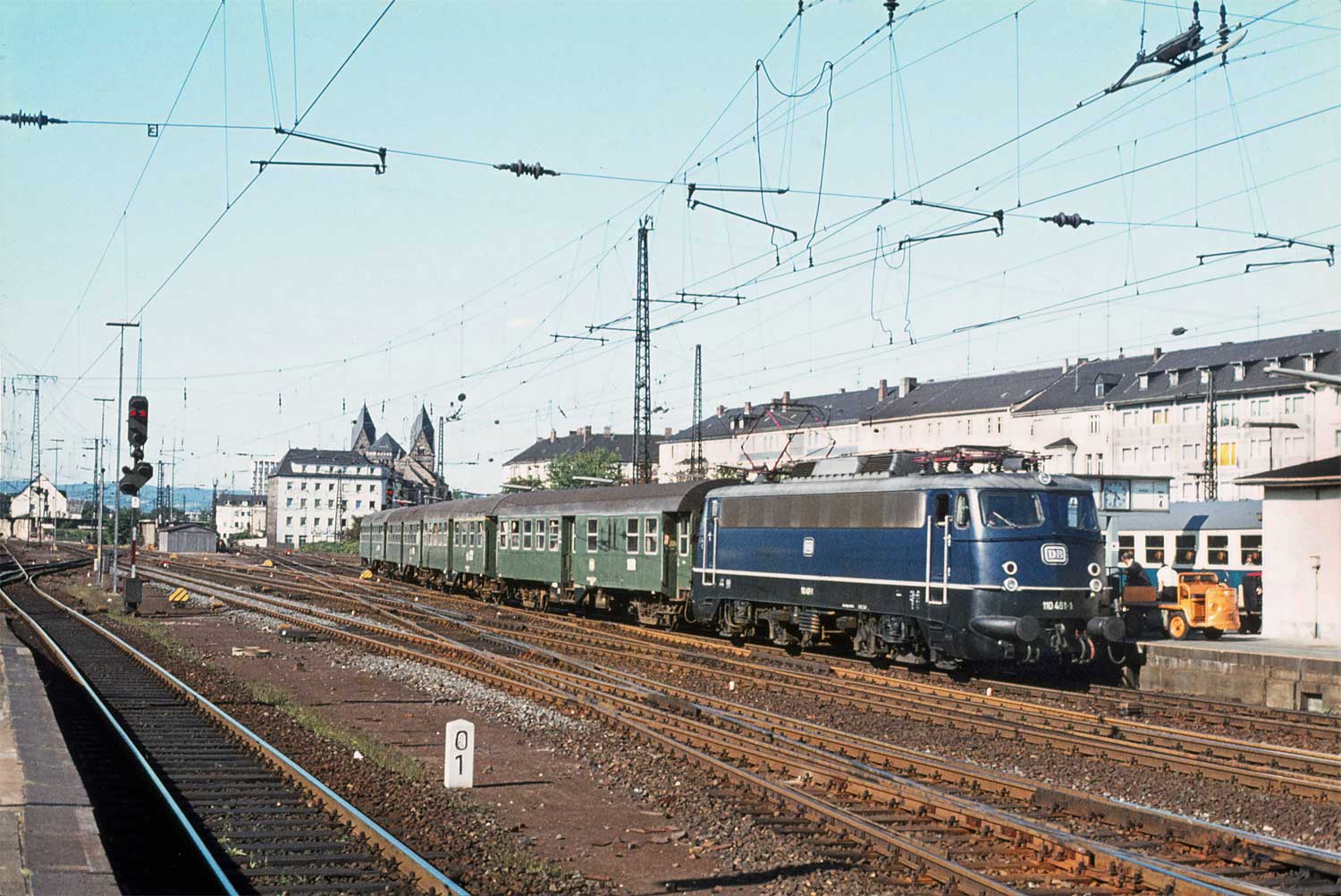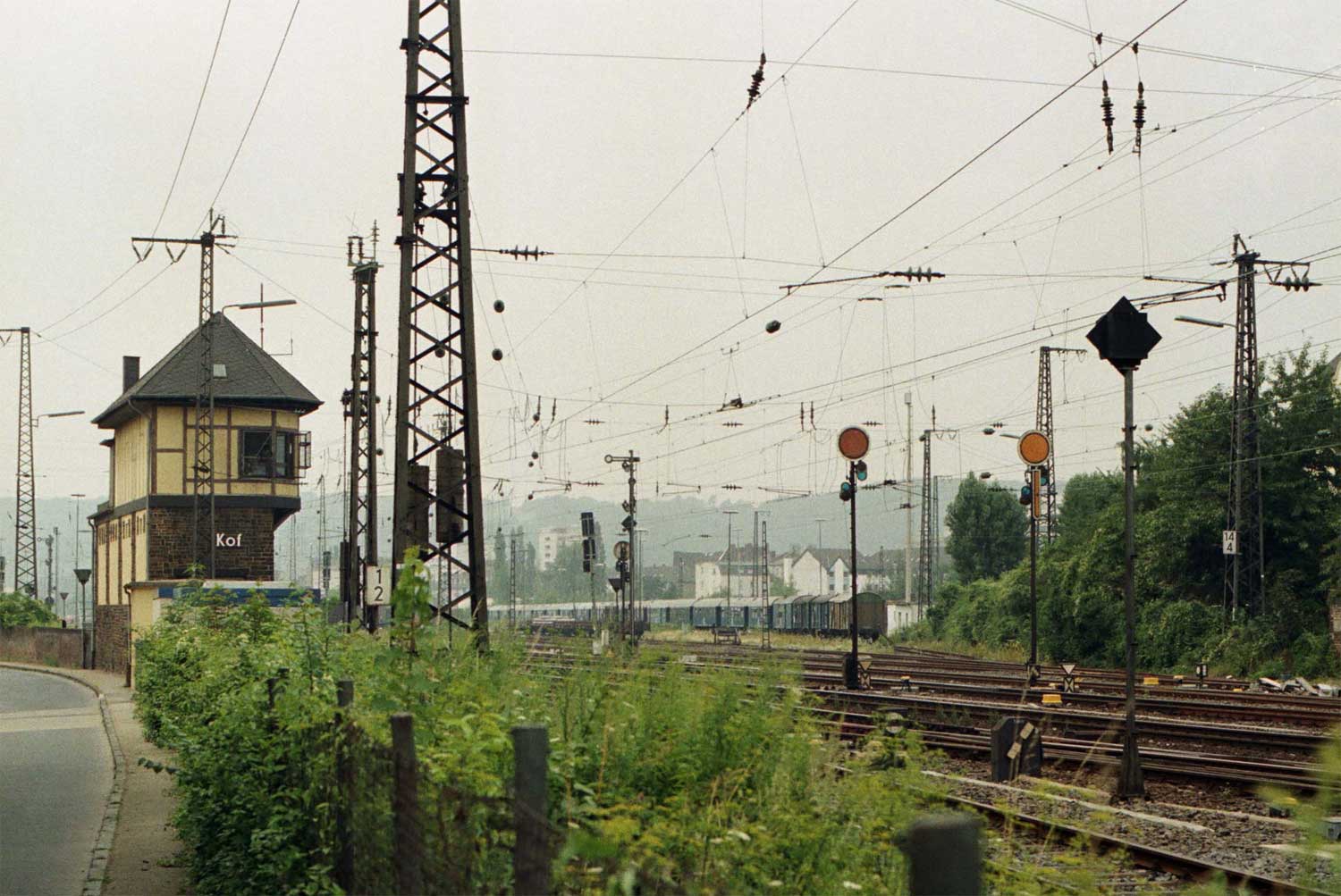 | Koblenz Hbf | 0,0 | km 91,20 der Strecke Köln Hbf 0,0 - Koblenz Hbf 91,20 - Bingerbrück 151,98 - Landesgrenze Preußen/Hessen (Mitte Nahebrücke) km 152,41 = [km 0,0 - Bingen (Rhein) 0,97 - Mainz Hbf 30,58] (siehe auch Tabelle 4, Ziffer 4) |