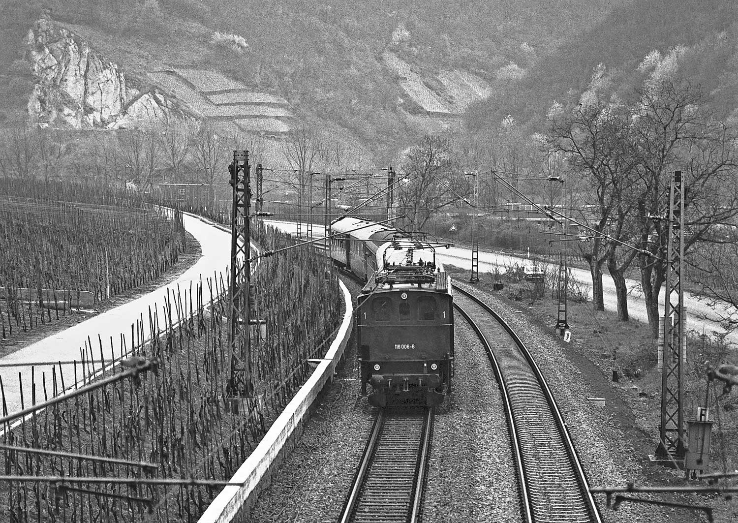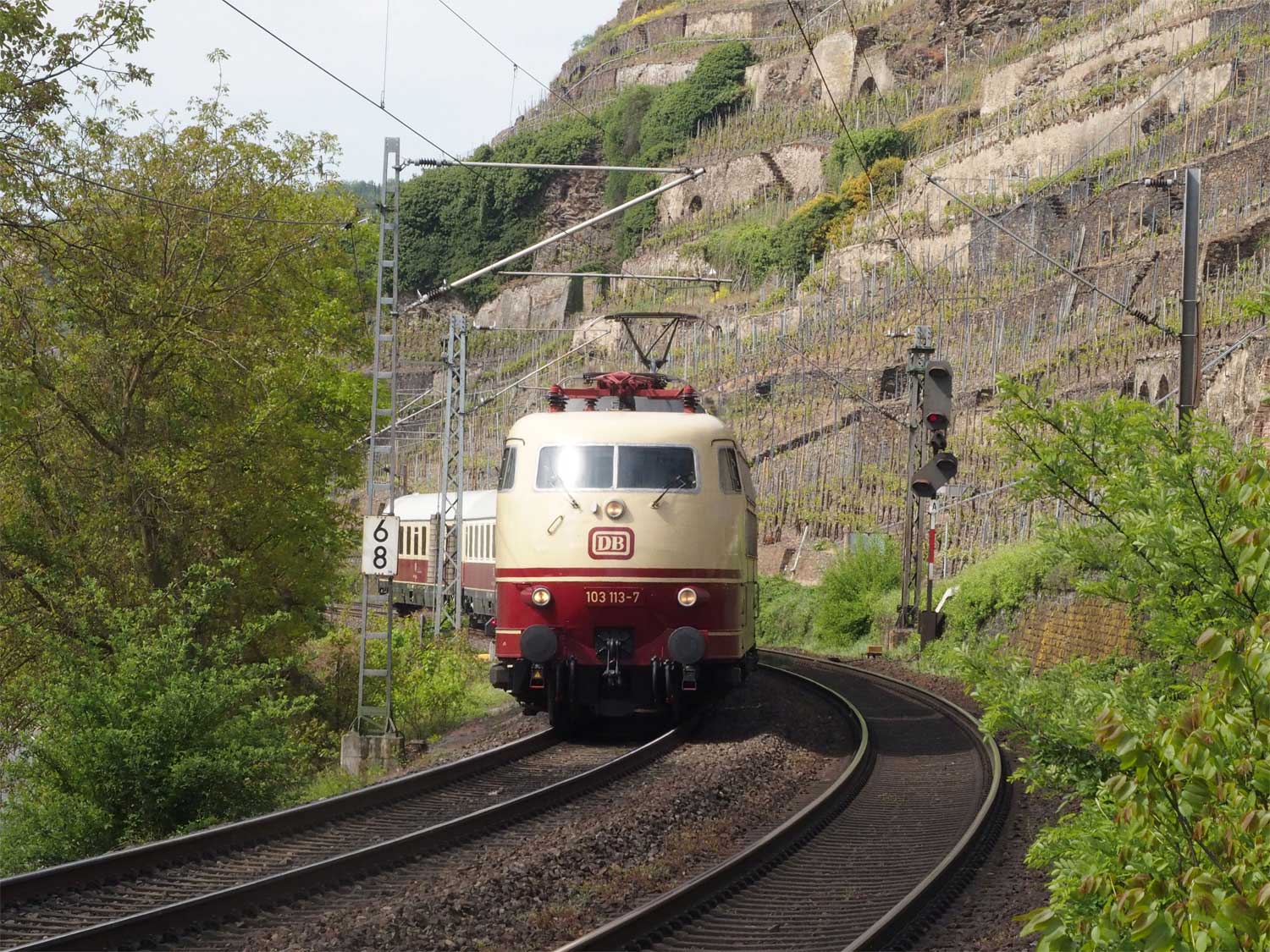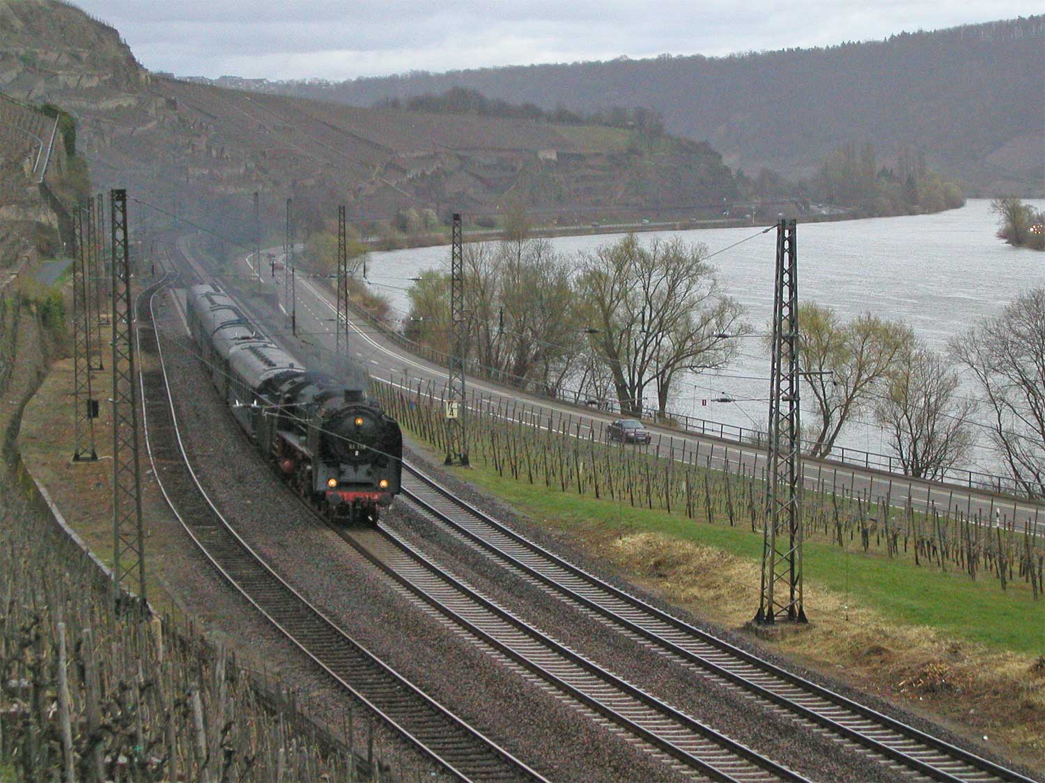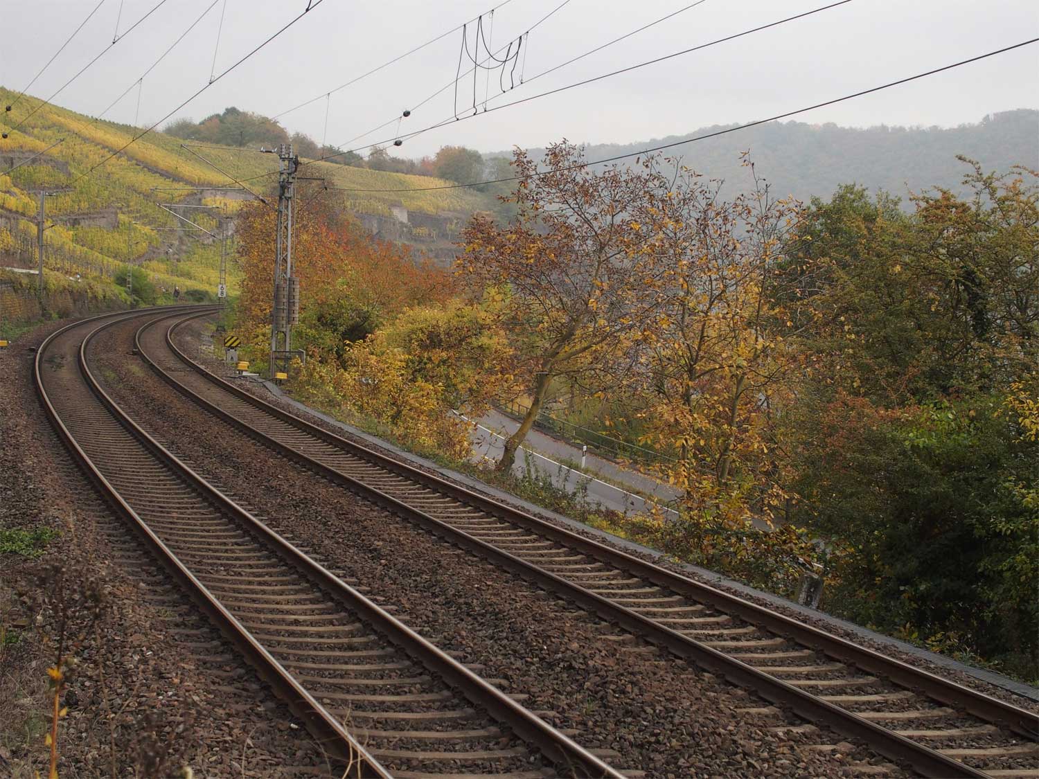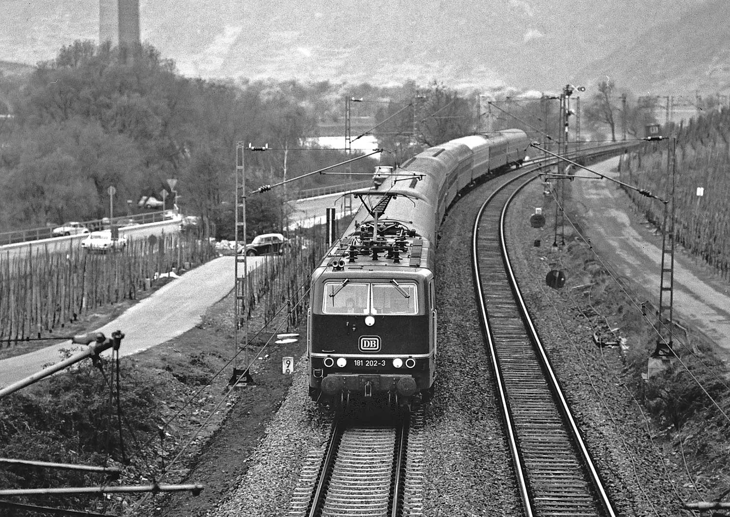 km 7,2 in Winningen (Mosel) - 181 219 mit dem letzten IC Moselabwärts