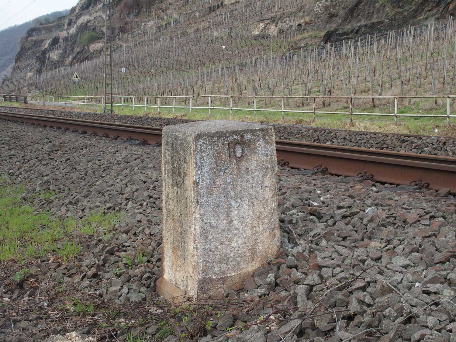 km 6,8 (Tafel) und km 6,9 (Stein) zwischen Koblenz-Güls und Winningen (Mosel)