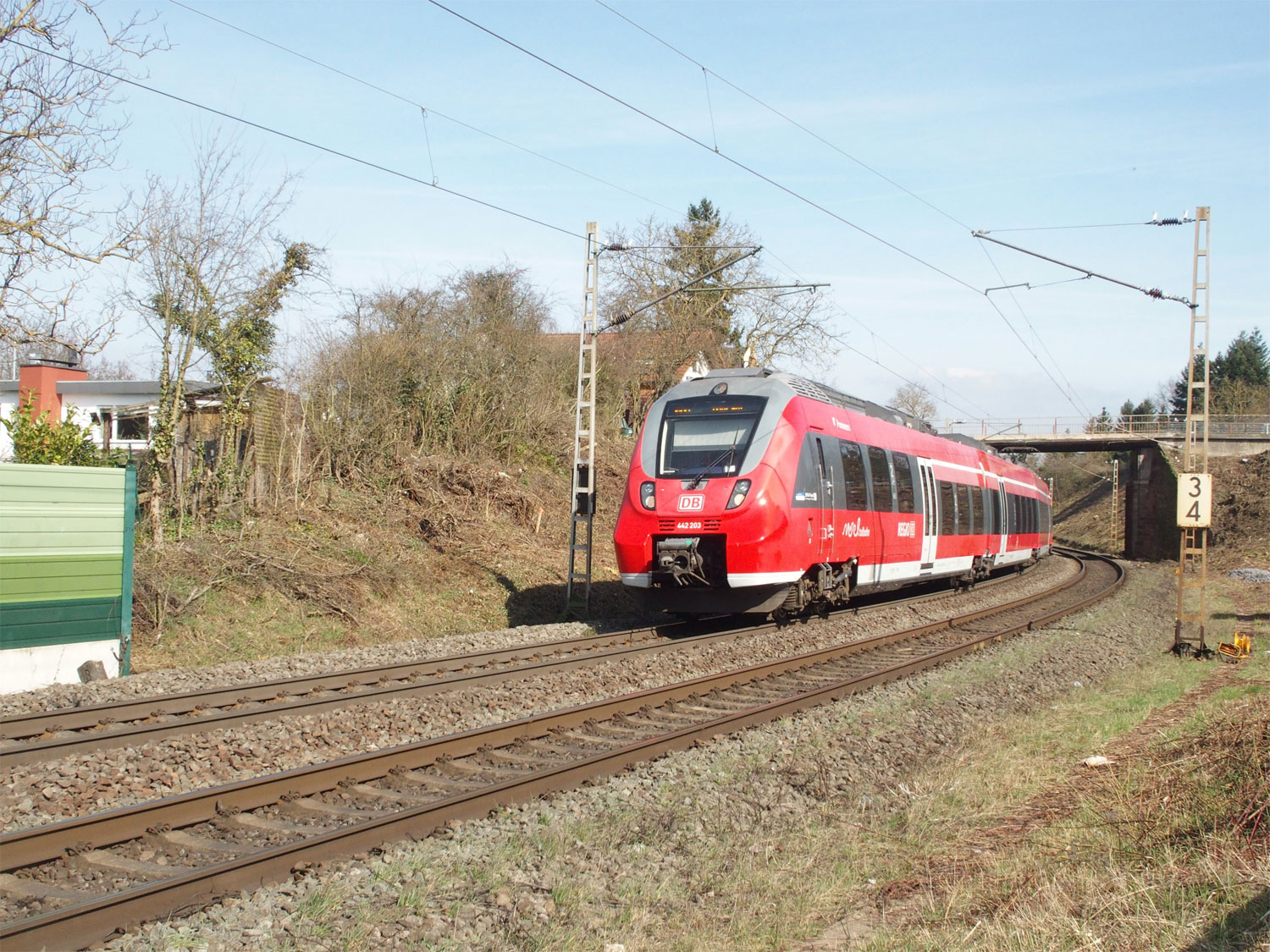 km 4,2 (Stein und Tafel) in Koblenz-Güls - 442 203, 443 203, 443 702, 442 703 als RB 12119