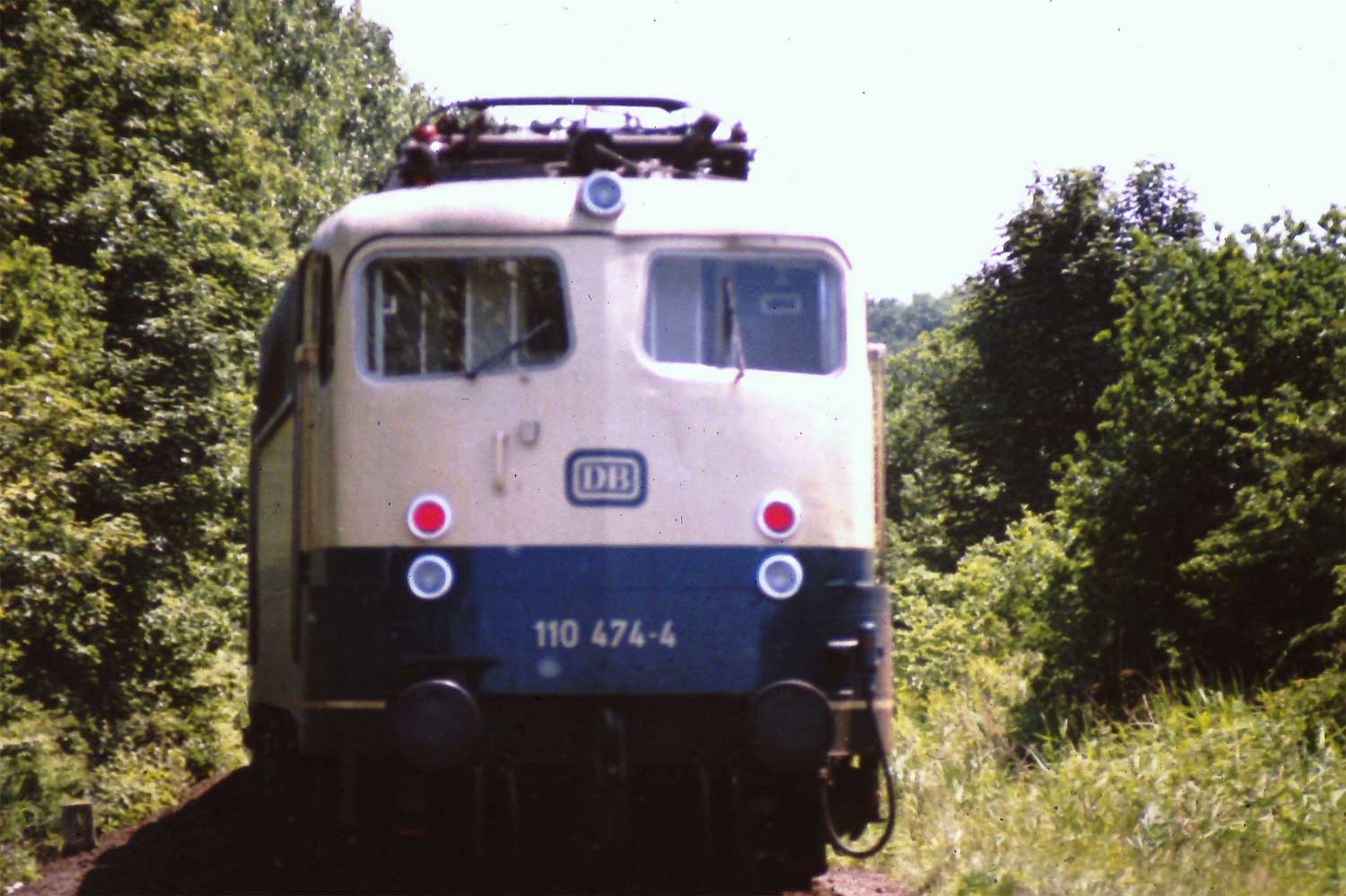 Als Schlusslok die 110 474, die den Zug dann ab Krefeld unter dem Fahrdraht weiter beförderte