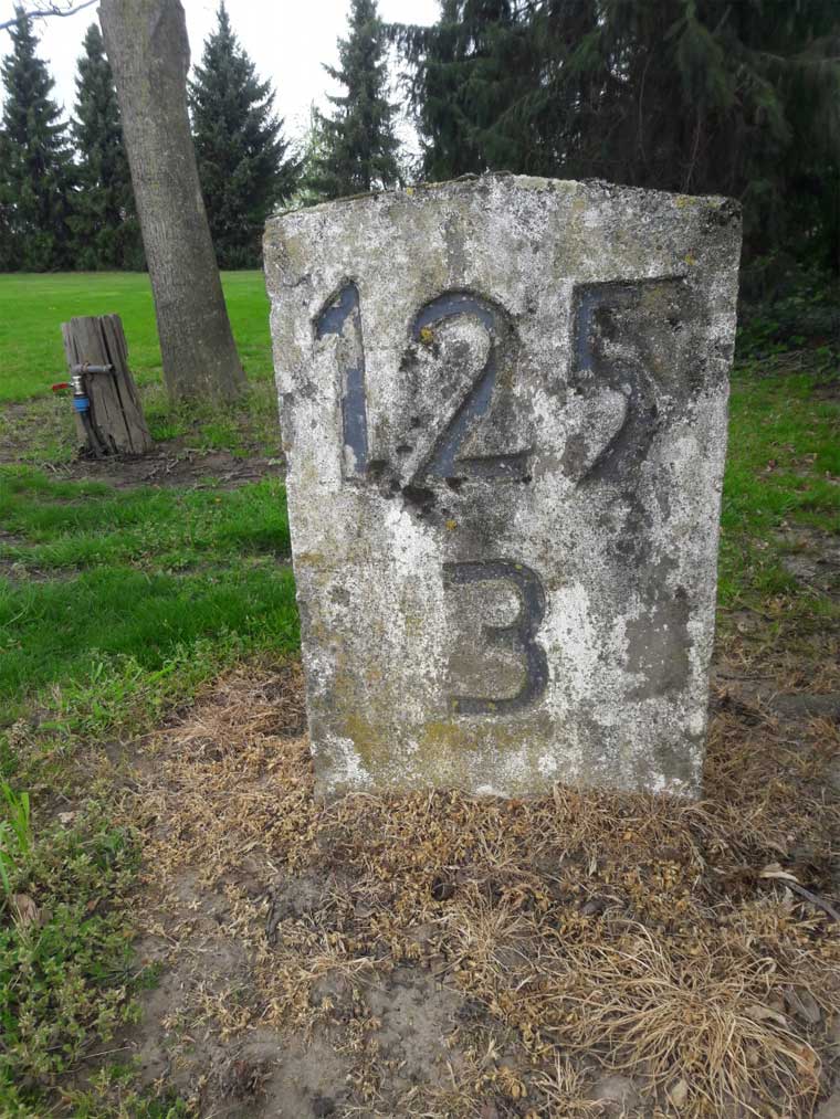 km 120,0 (Tafel und Stein) zwischen Kleve und Donsbrüggen