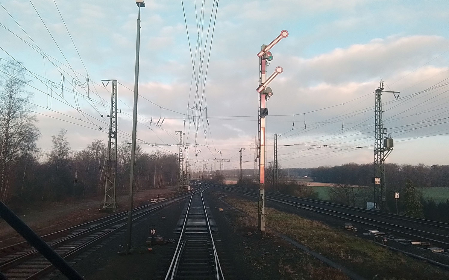 km 1,0 (links, Richtungsgleis) im Bereich Köln Bbf - Blick Richtung Kranenburg