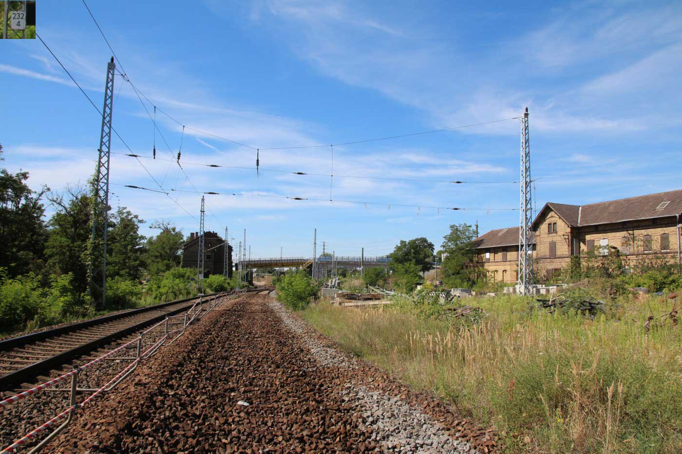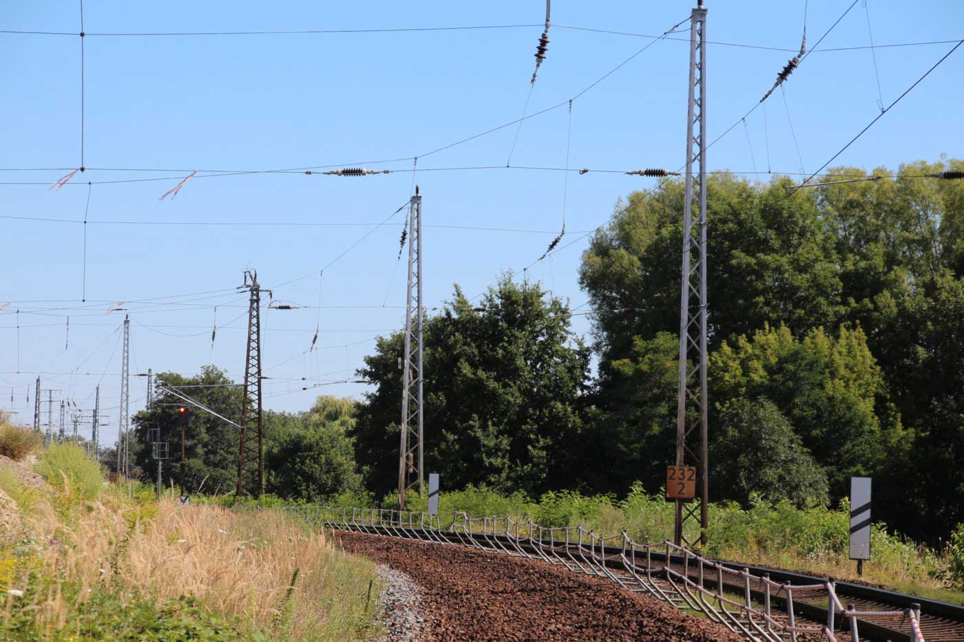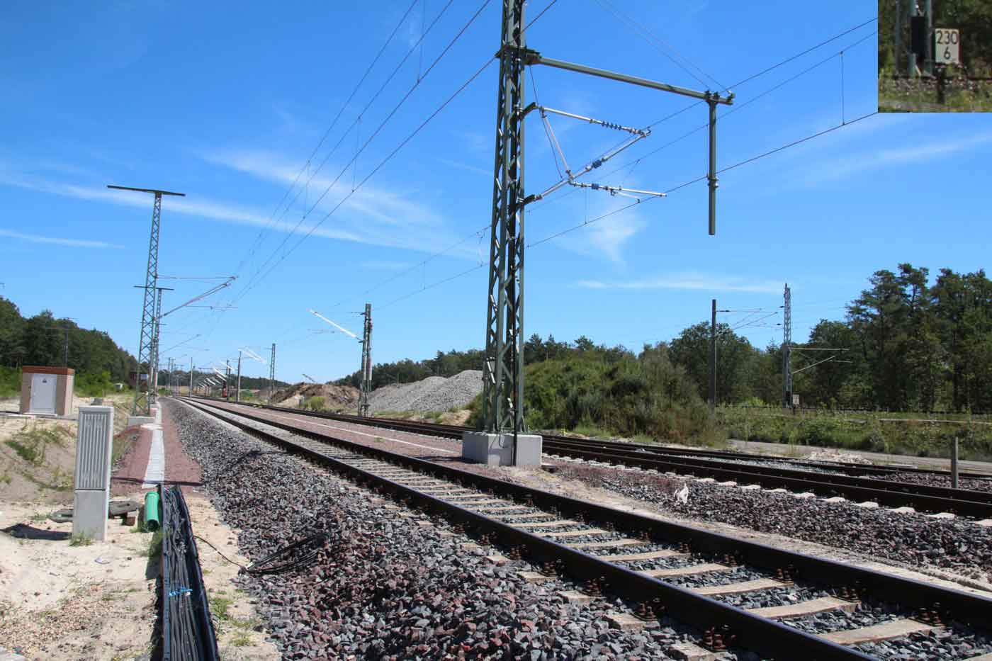 km 232,6 (hinter dem Oberleitungsmast) gehört zum Streckenast